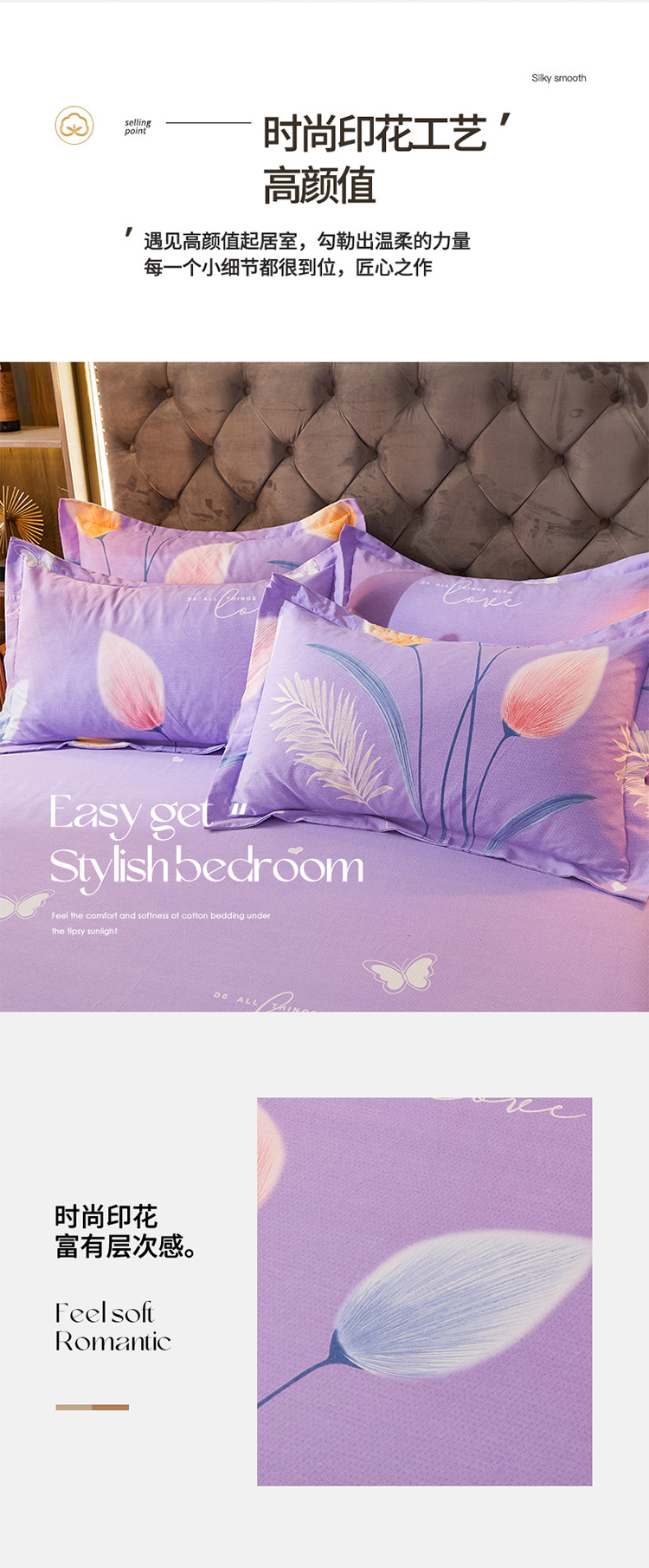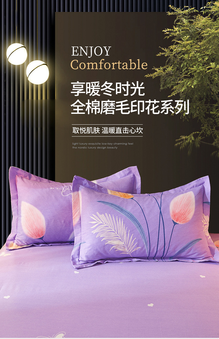 商品名称:伊而梦 2023新款全棉磨毛印花四件套系列单品枕套 香兰草-紫