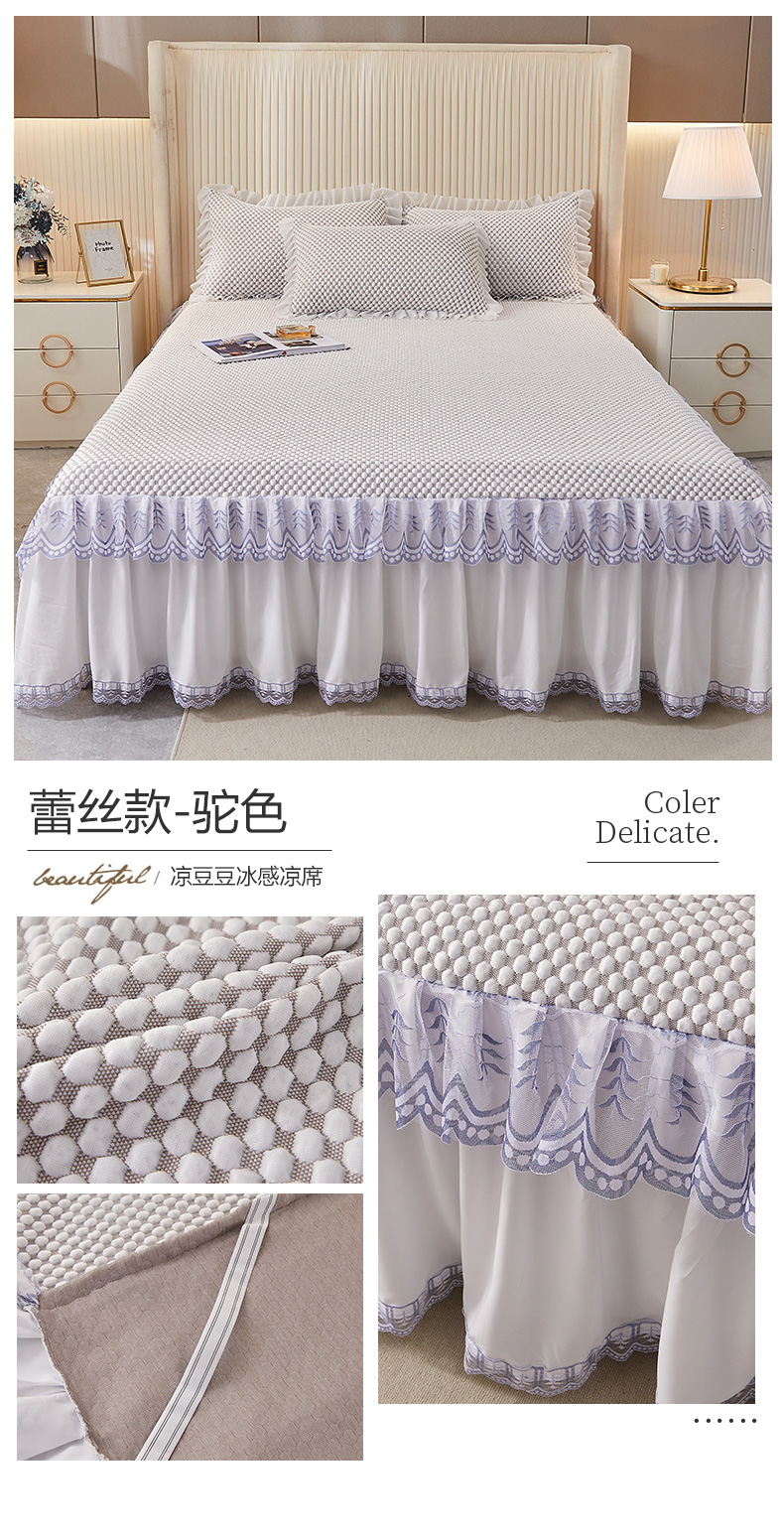 鑫姿席业 2025新款抗菌3D豆豆凉感凉席蕾丝款 驼色