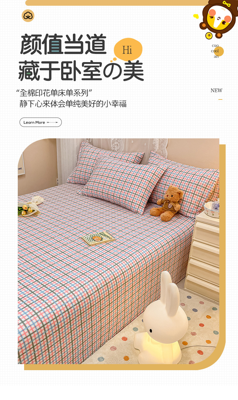 (总)小懒猪 2026全棉纯棉印花单床单床单单件,铂格纹,粉喵甜梦,蓝调喵趣,蓝灰格絮,蓝絮银织,柳色衫林,漫彩花韵,淡紫花屹,喵语时光,墨旋,沐风苍兰,青蔓花盏,清棱,森屹兔眠,素环影,素律,童梦汪旅,雾蓝花簇,线影轻痕,星兔软糖,元气熊仔,紫粉花漾