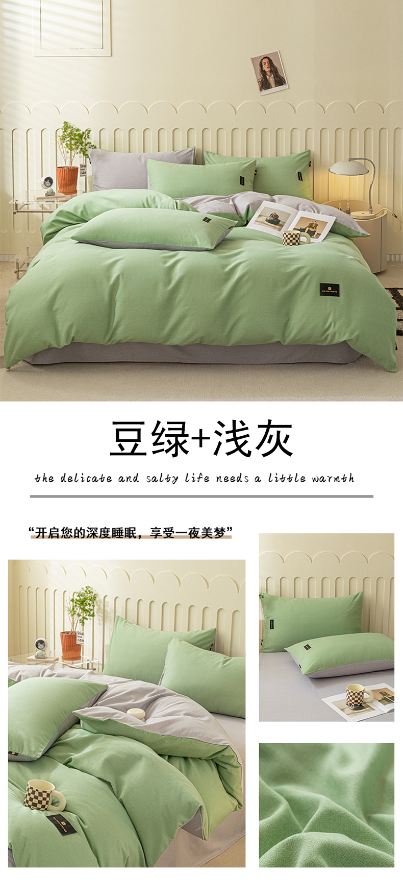 当前位置: 91家纺网 > 商品网购 > 床品套件 > 四件套 > 磨毛活性四件套 > 涵宸家纺 棉磨毛-纯色织标-四件套(含单品) 豆绿+浅灰