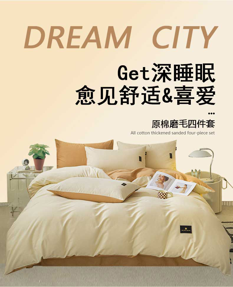 当前位置: 91家纺网 > 商品网购 > 床品套件 > 四件套 > 磨毛活性四件套 > 涵宸家纺 棉磨毛-纯色织标-四件套(含单品) 奶昔白+咖