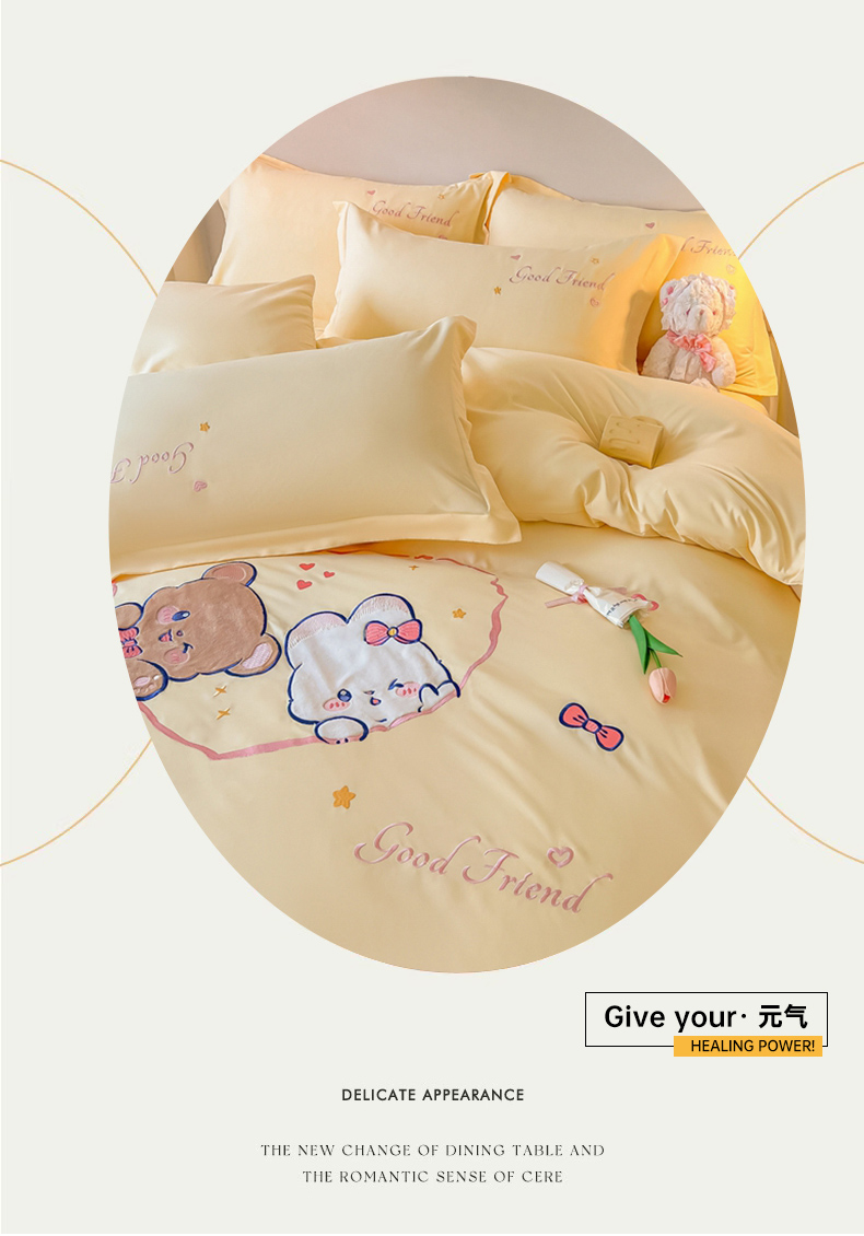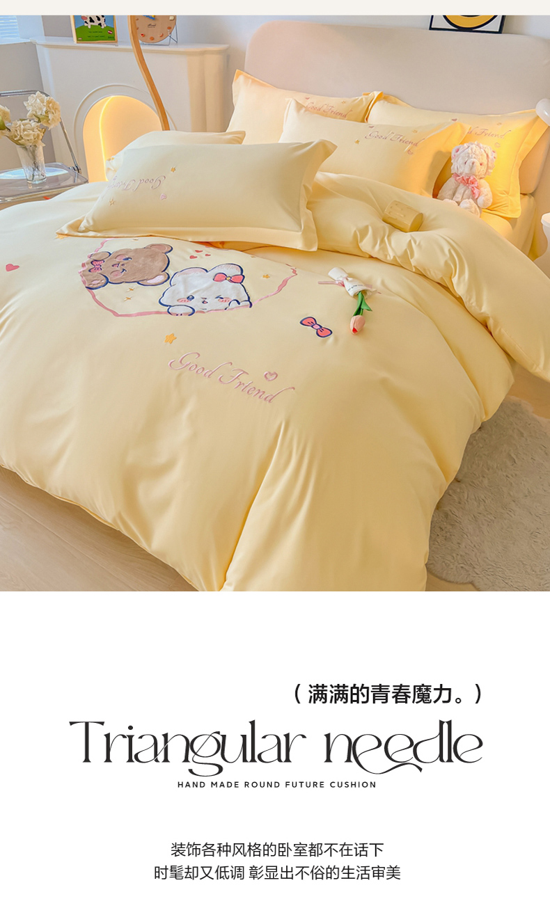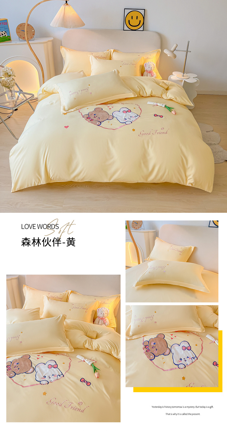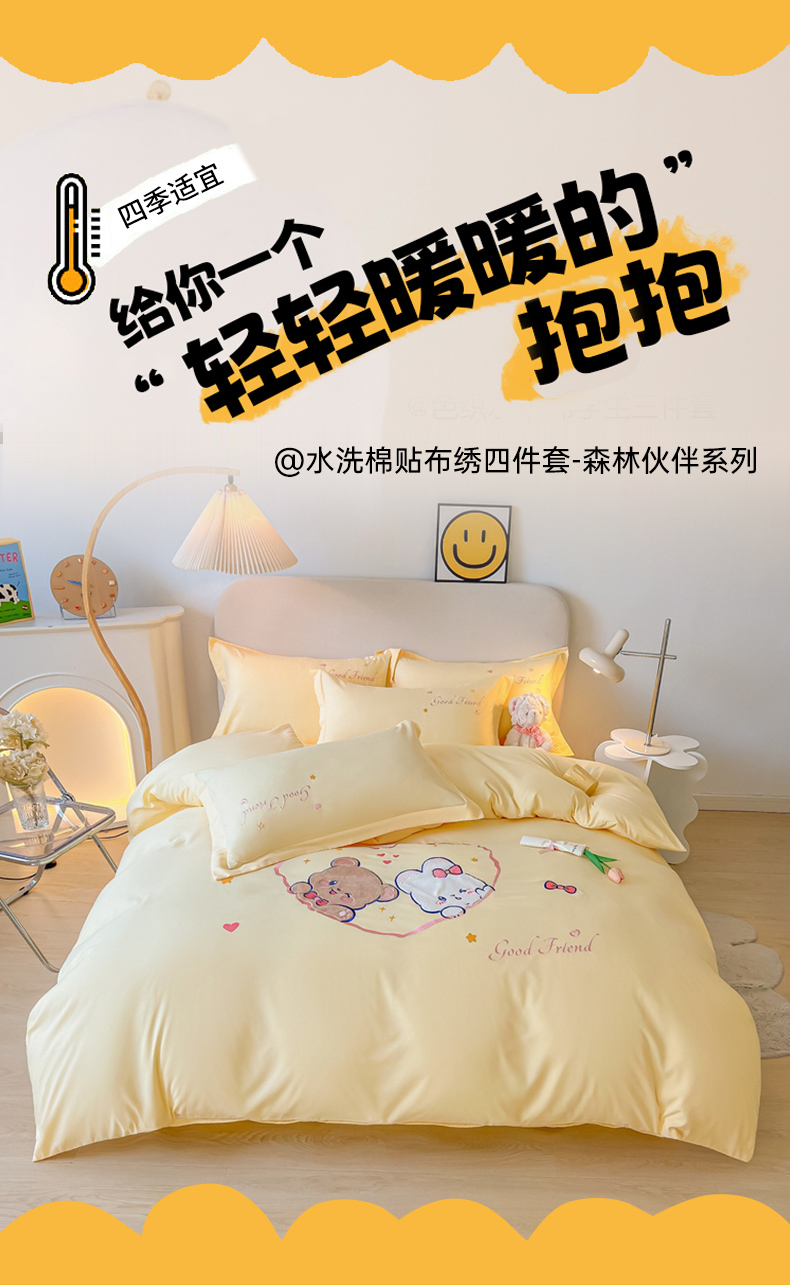 当前位置: 91家纺网 > 商品网购 > 床品套件 > 四件套 > 水洗棉四件套 > 我心家纺 2023新款水洗棉贴布绣四件套-森林伙伴系列 森林伙伴-黄