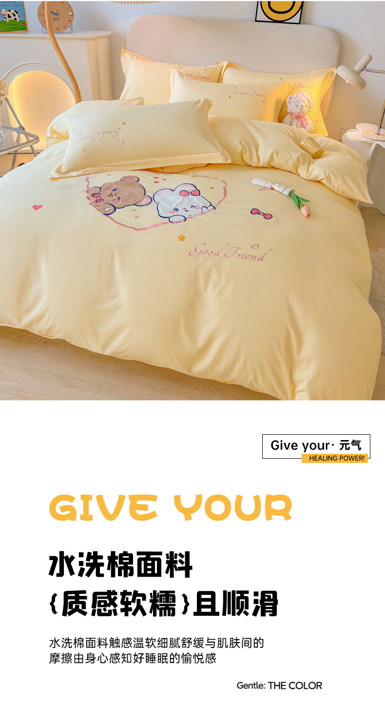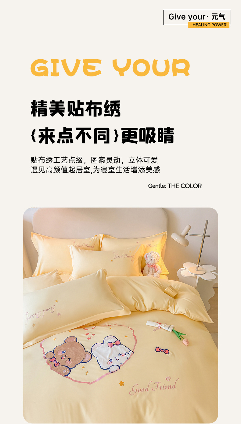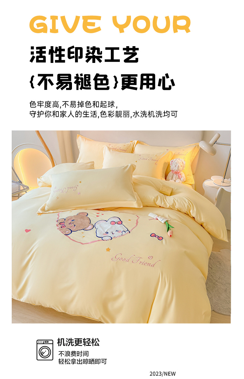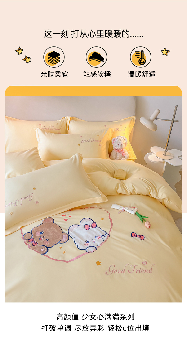 当前位置: 91家纺网 > 商品网购 > 床品套件 > 四件套 > 水洗棉四件套 > 我心家纺 2023新款水洗棉贴布绣四件套-森林伙伴系列 森林伙伴-黄
