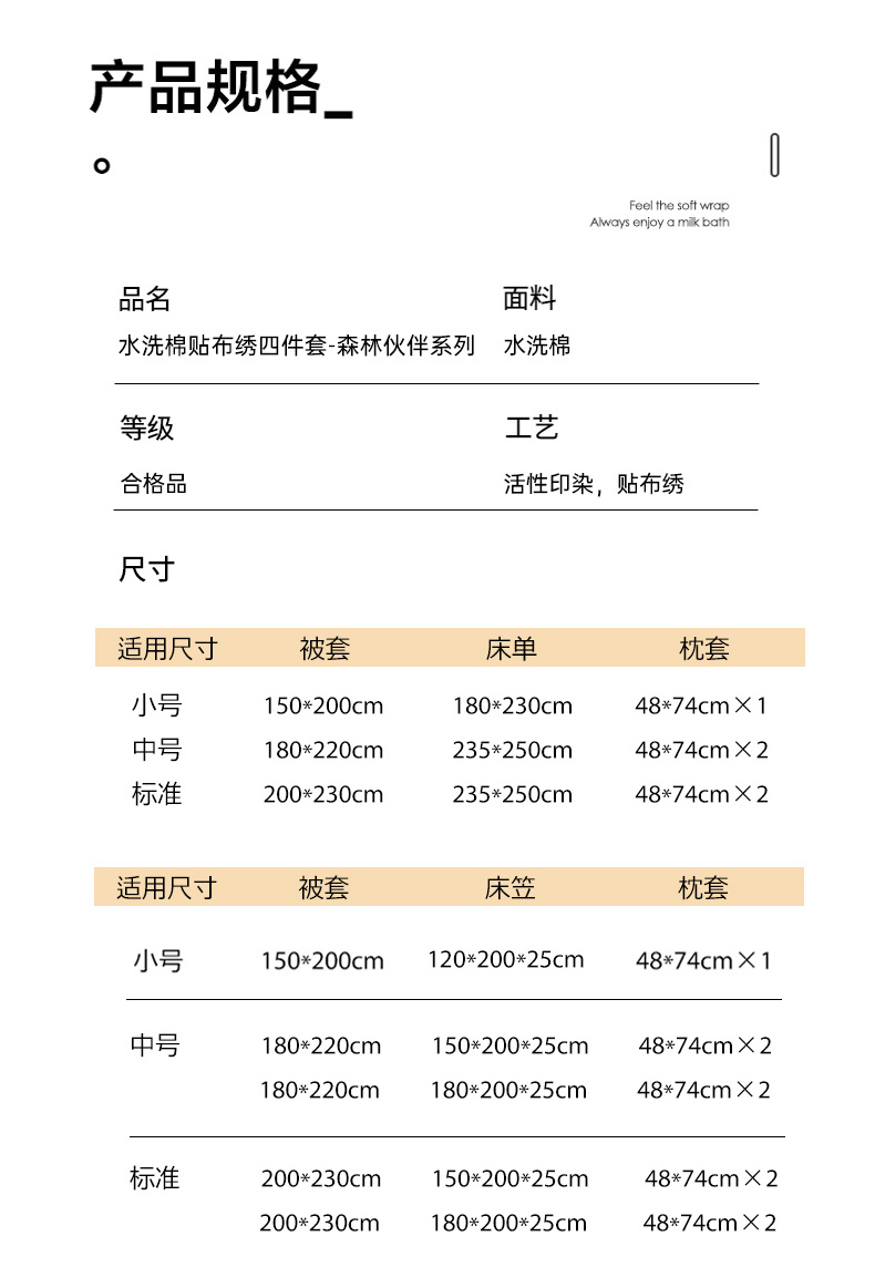 1.5m床笠款四件套(被套200*230cm) | ¥96.00 |