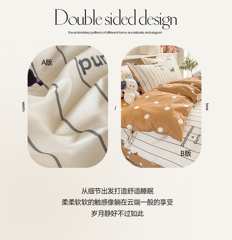 简宜家居 2025新款40支13070纯棉卡通系列四件套 呆萌腊肠