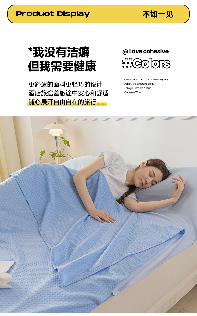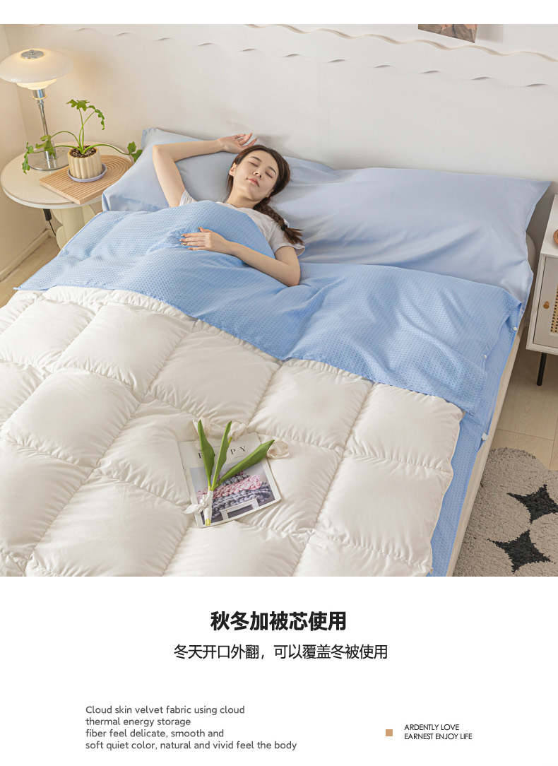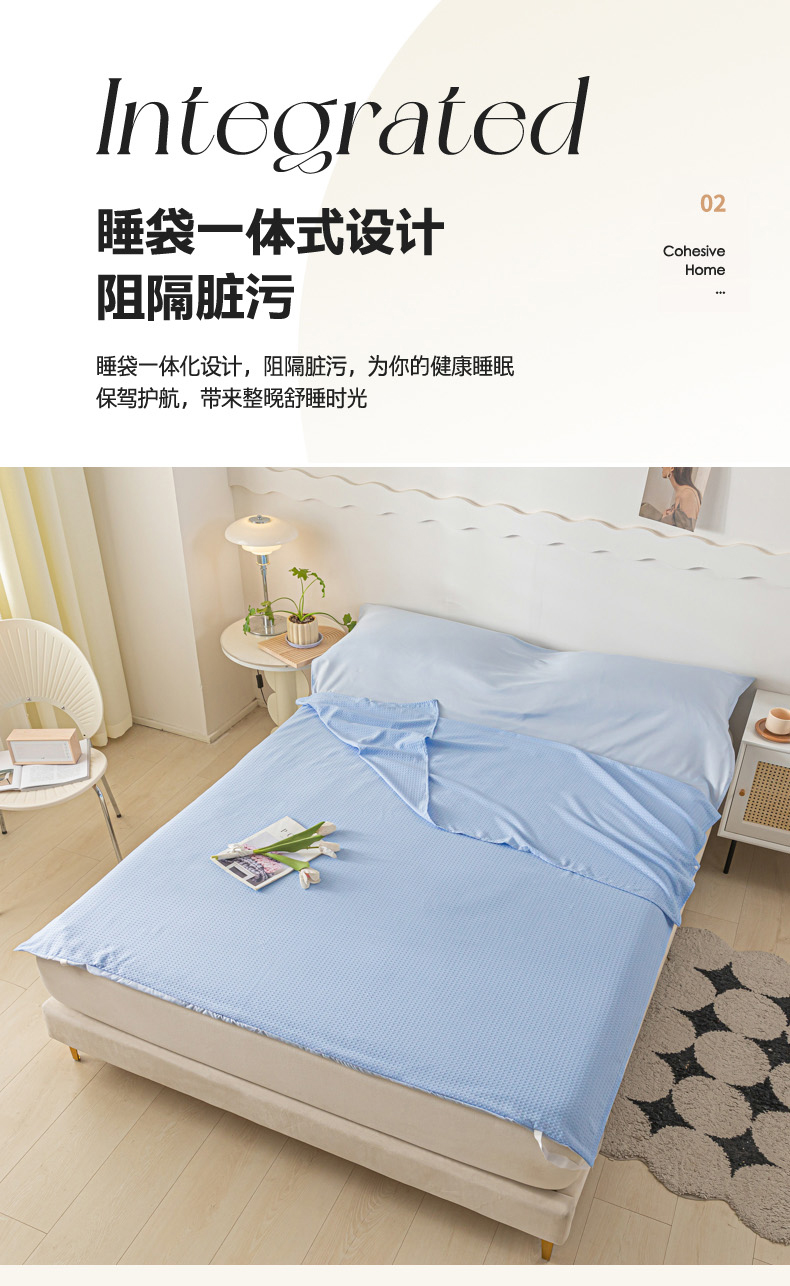 慕澄家纺 2024新款华夫格便携睡袋 华夫格-天蓝