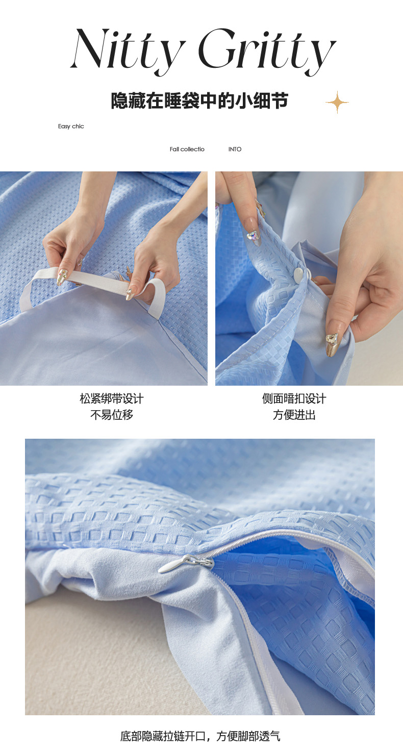 商品名称:慕澄家纺 2024新款华夫格便携睡袋 华夫格-天蓝