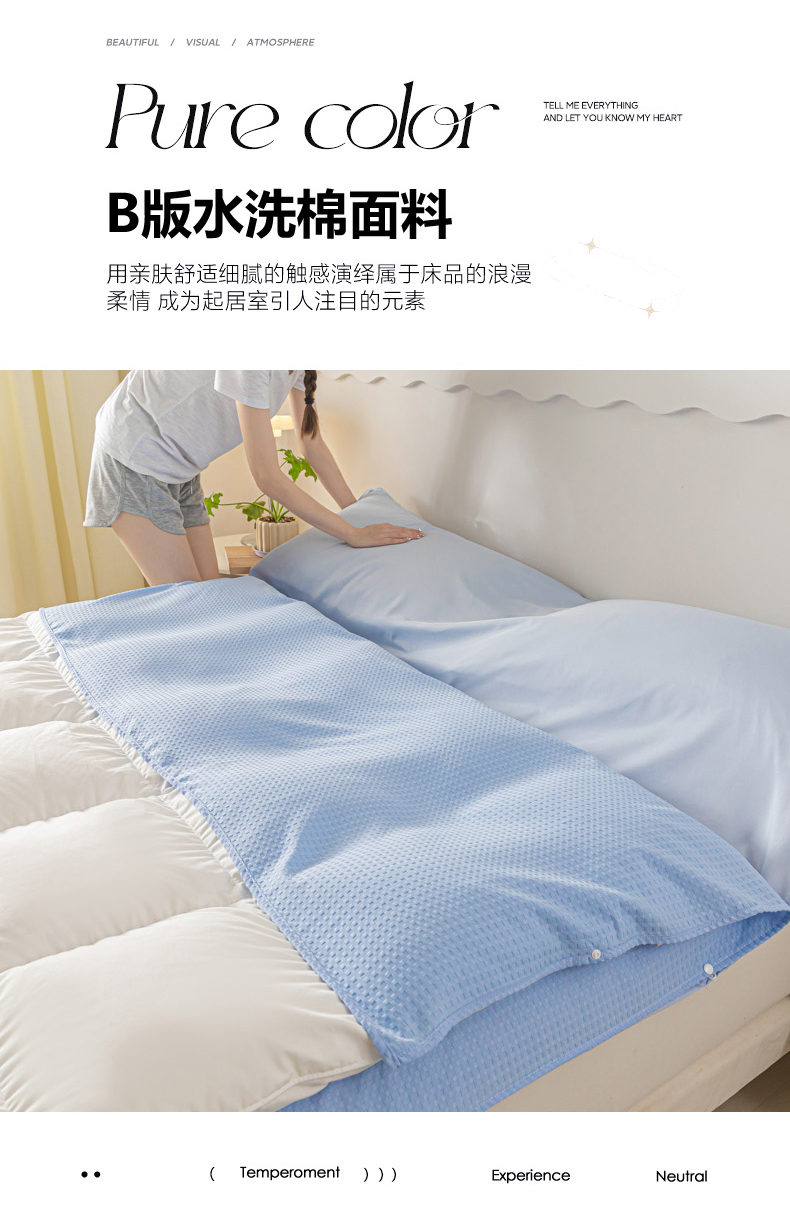 (总)慕澄家纺 2022新款华夫格简约款泡泡四件套,湖水绿,魅惑紫,奶白色,奶黄色,浅豆沙,情调灰,天空蓝,樱花粉