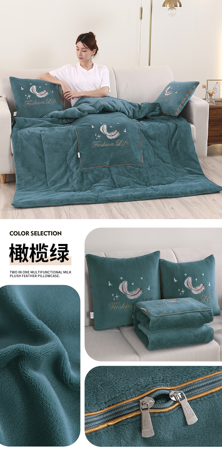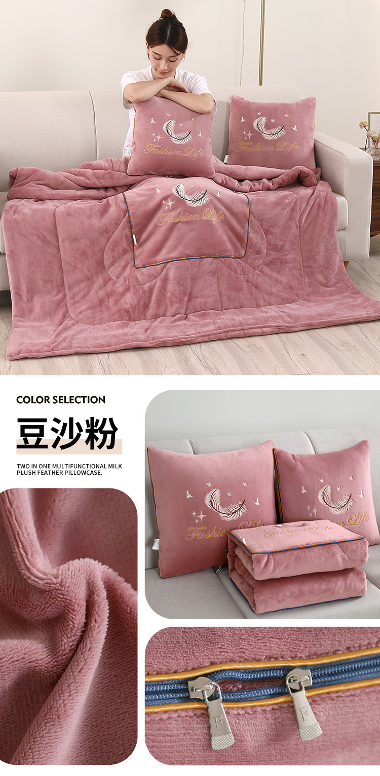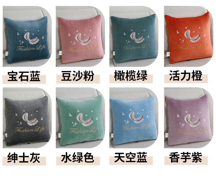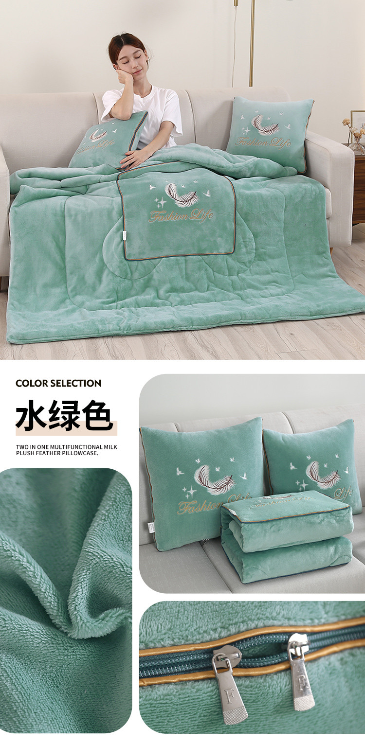 (总)照世家纺 2025新款牛奶绒简约复古款抱枕被,草绿,淡粉,千代紫,深灰,深蓝,天兰,香芋紫,杏粉