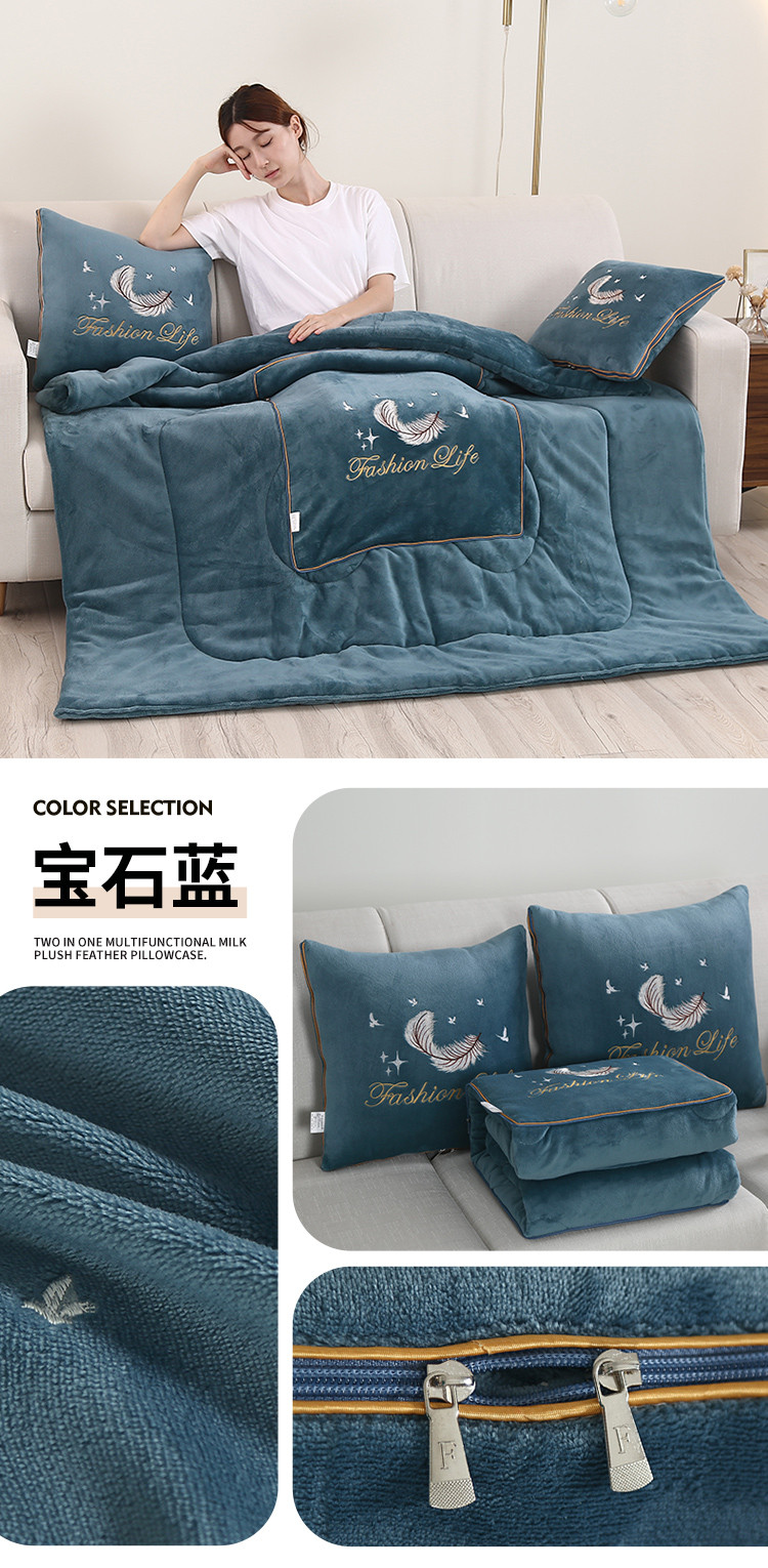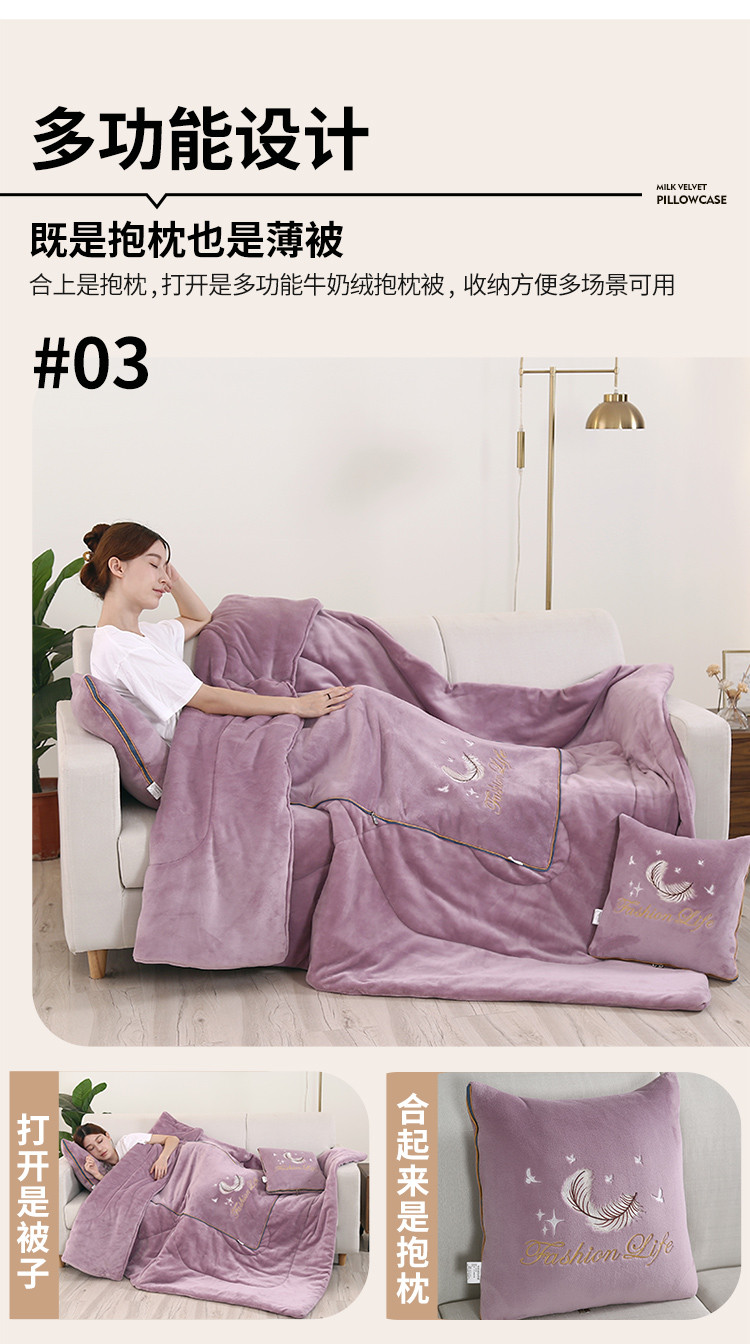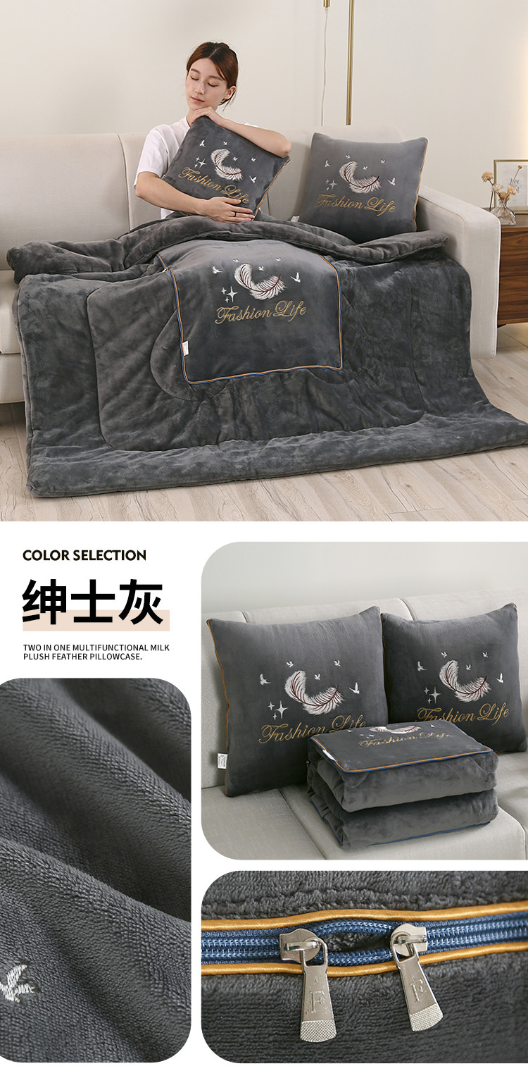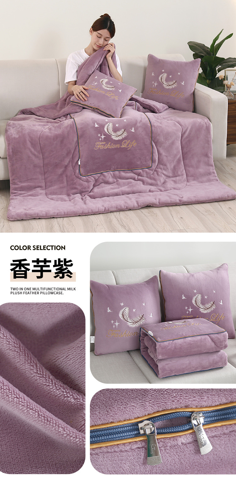 (总)照世家纺 2025新款牛奶绒简约复古款抱枕被,草绿,淡粉,千代紫,深灰,深蓝,天兰,香芋紫,杏粉