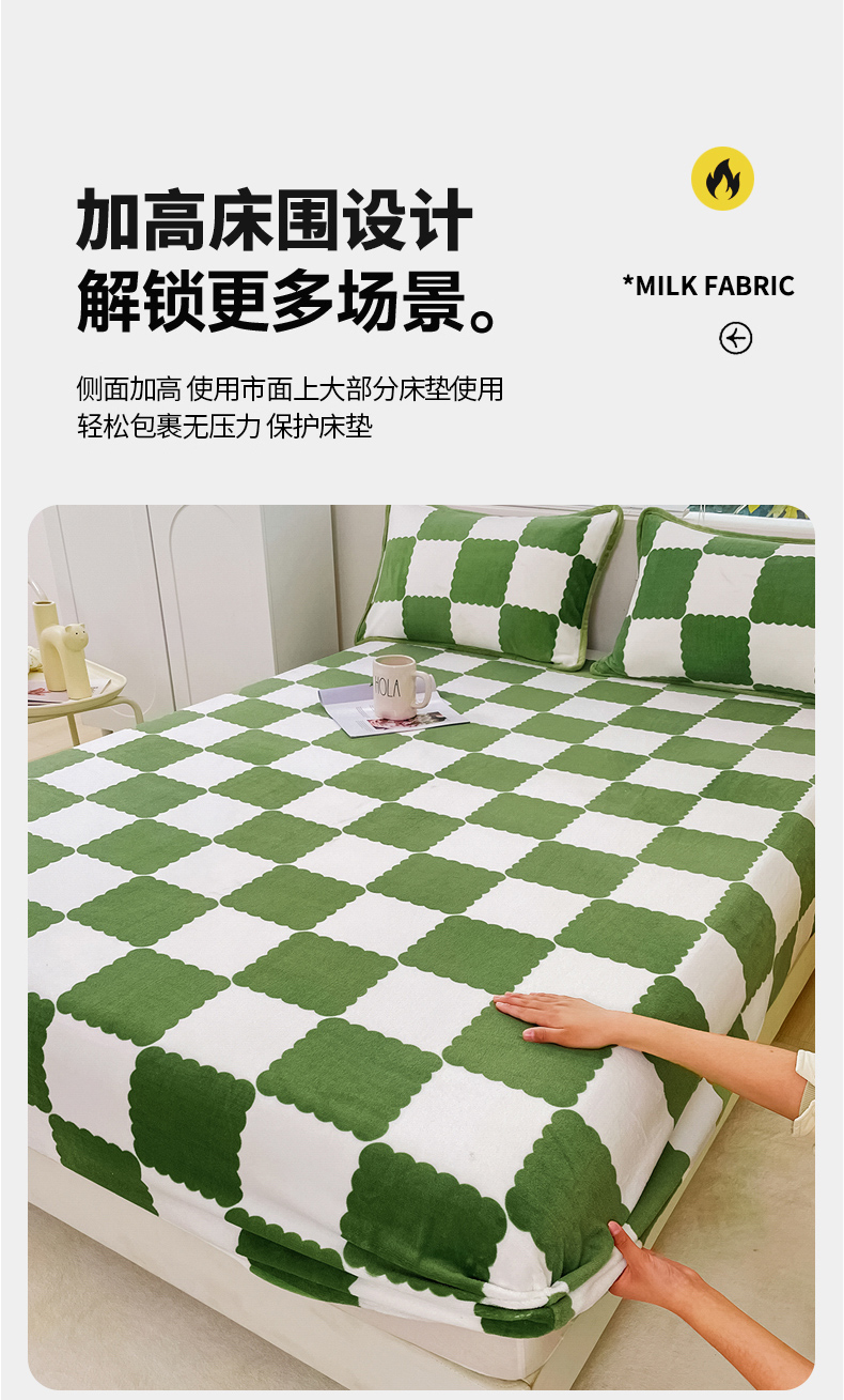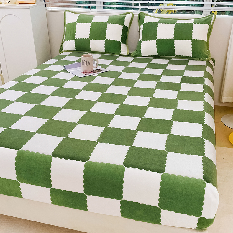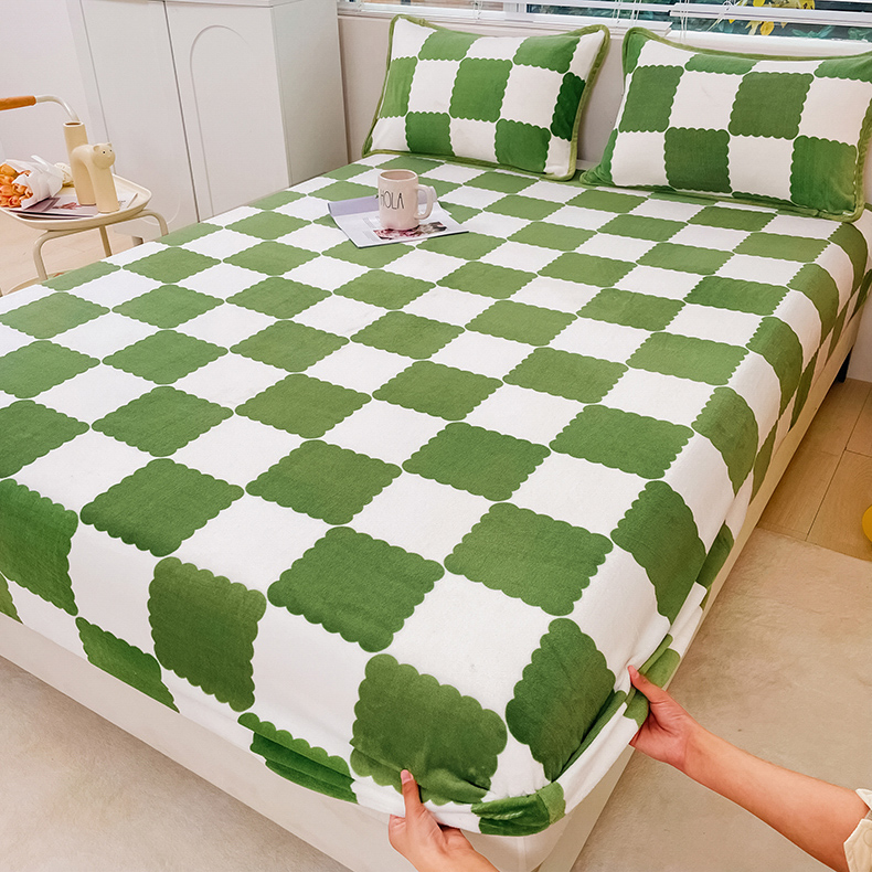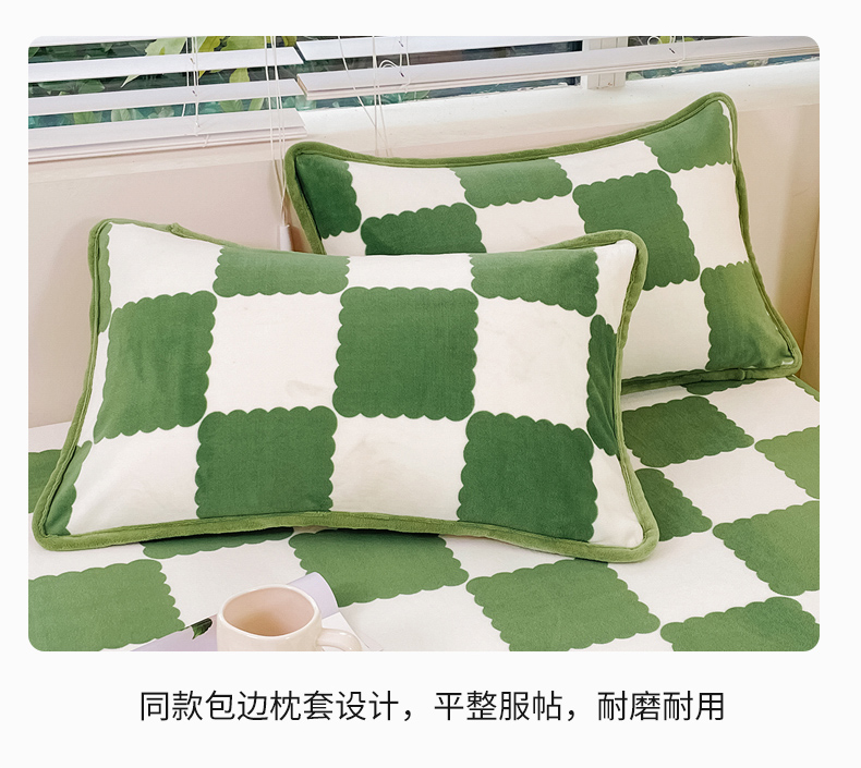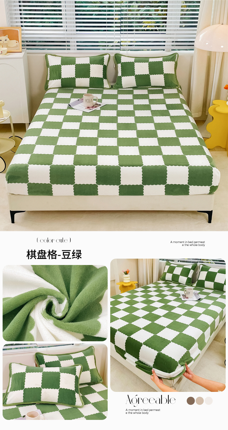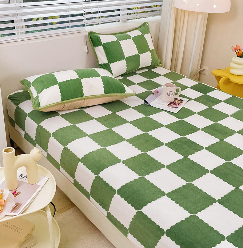 恒尚居 2024新款印花【棋盘格】系列高克重牛奶绒床笠 棋盘格-豆绿