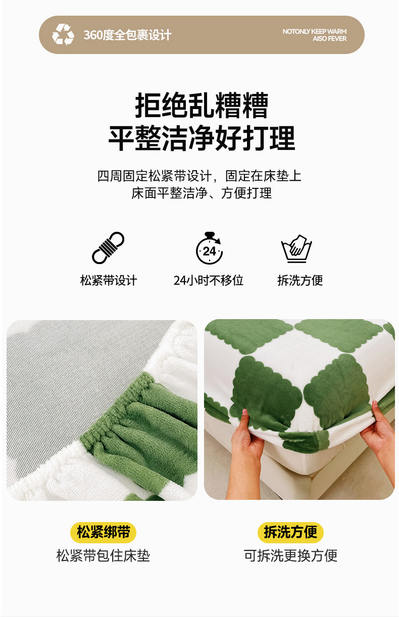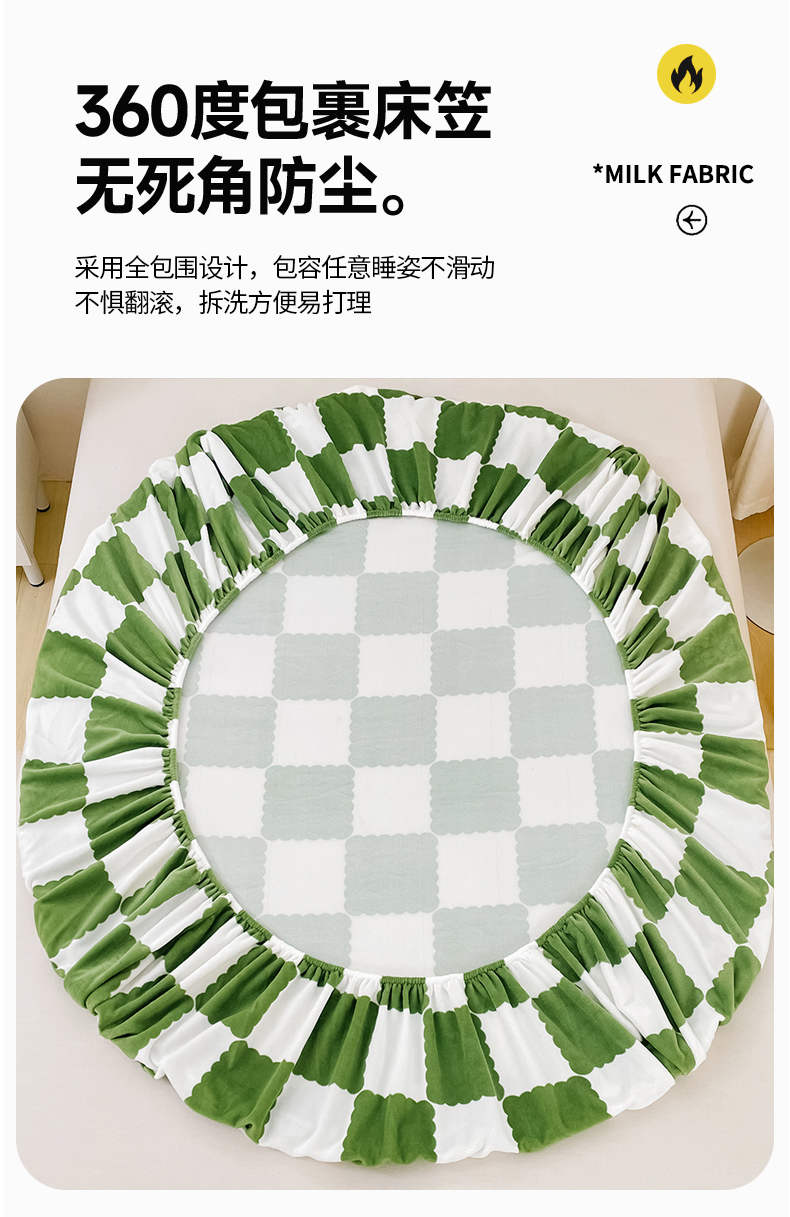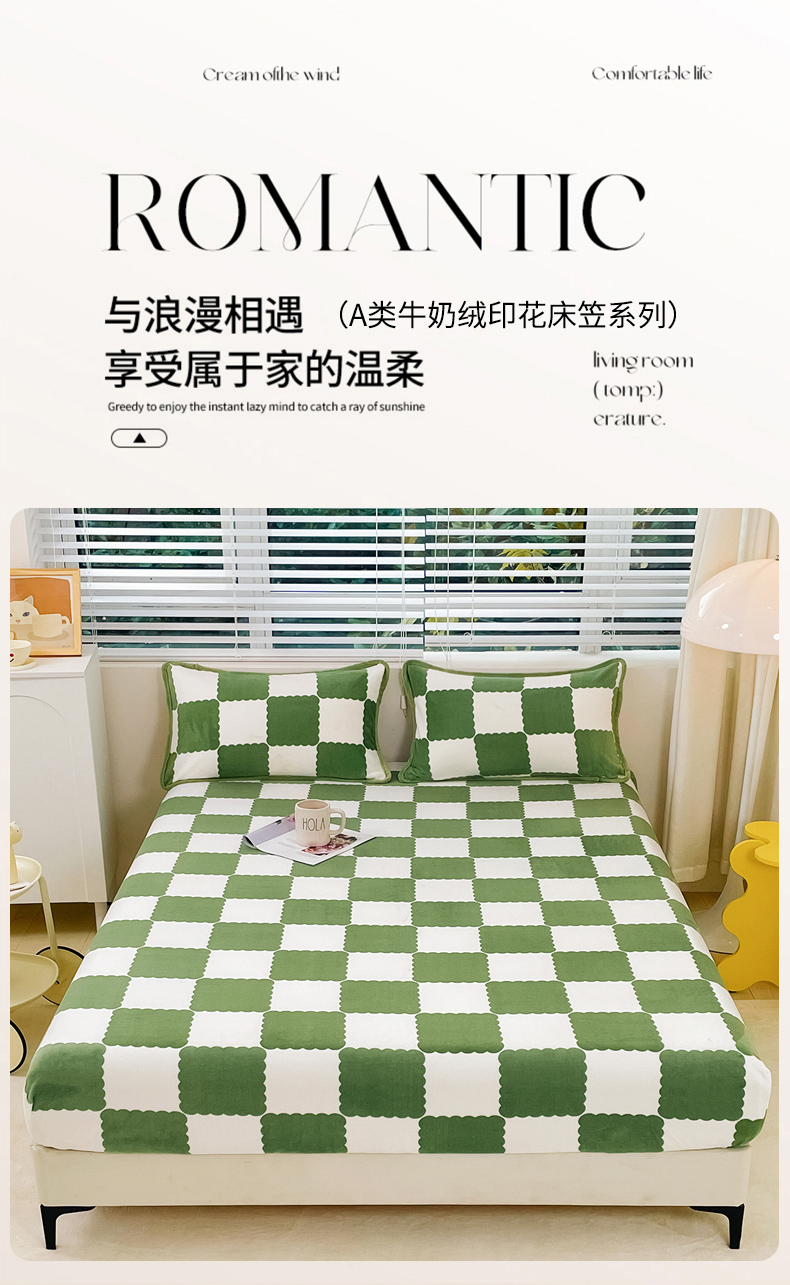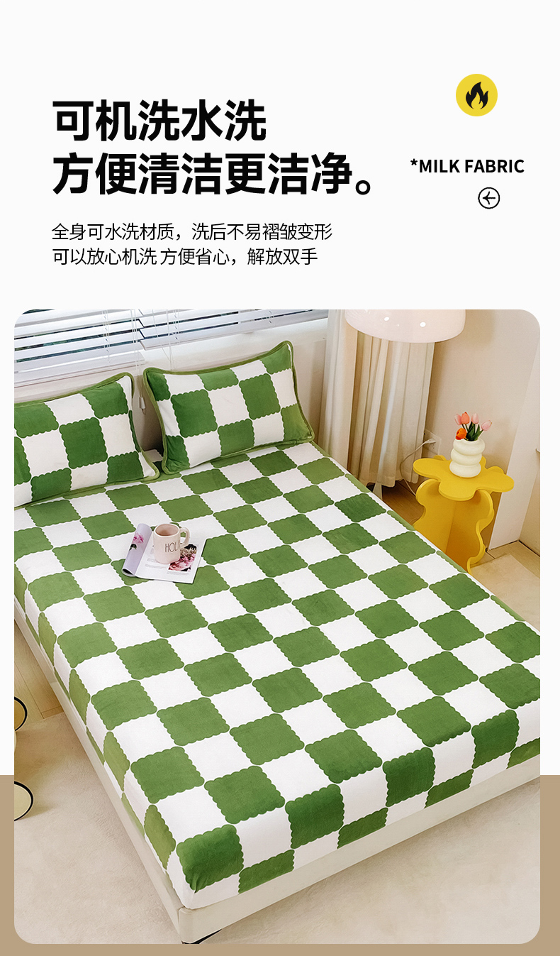 恒尚居 2024新款印花【棋盘格】系列高克重牛奶绒床笠 棋盘格-豆绿