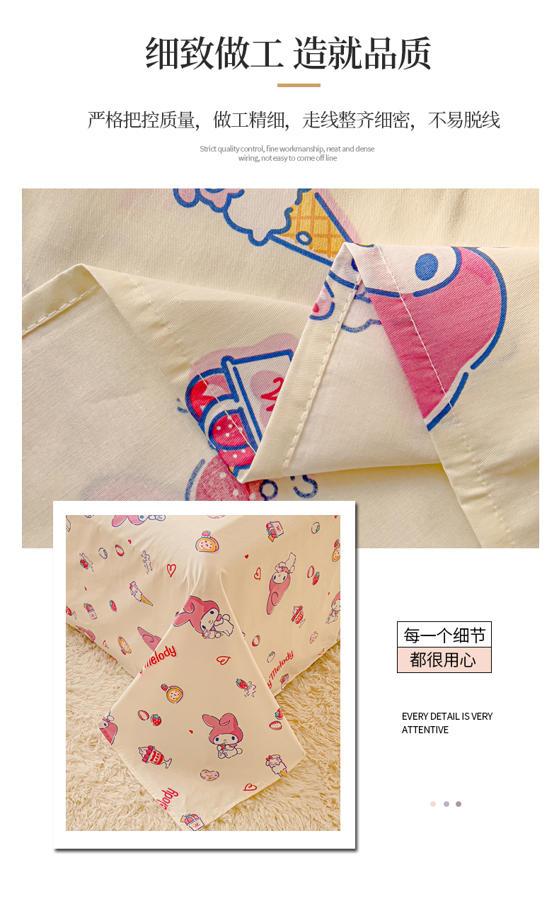 (总)金丝鸟家纺 2025新款三丽鸥系列全棉斜纹13370单品床笠,波点美乐蒂,彩虹大耳朵狗,条纹库洛米,晚安kt