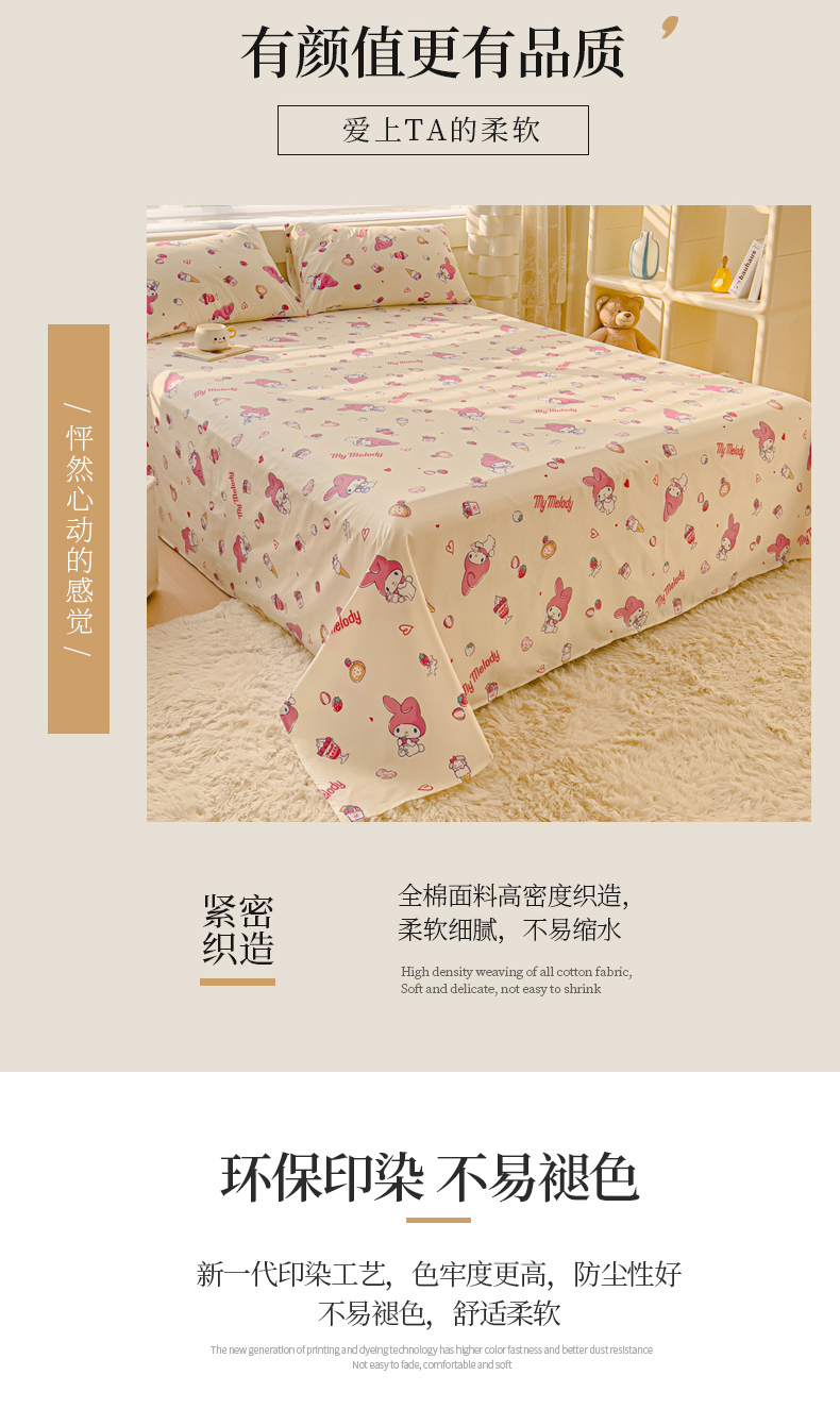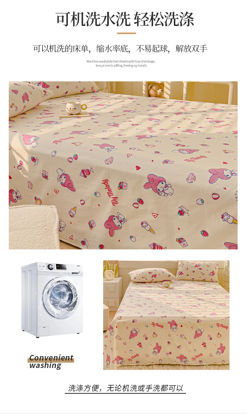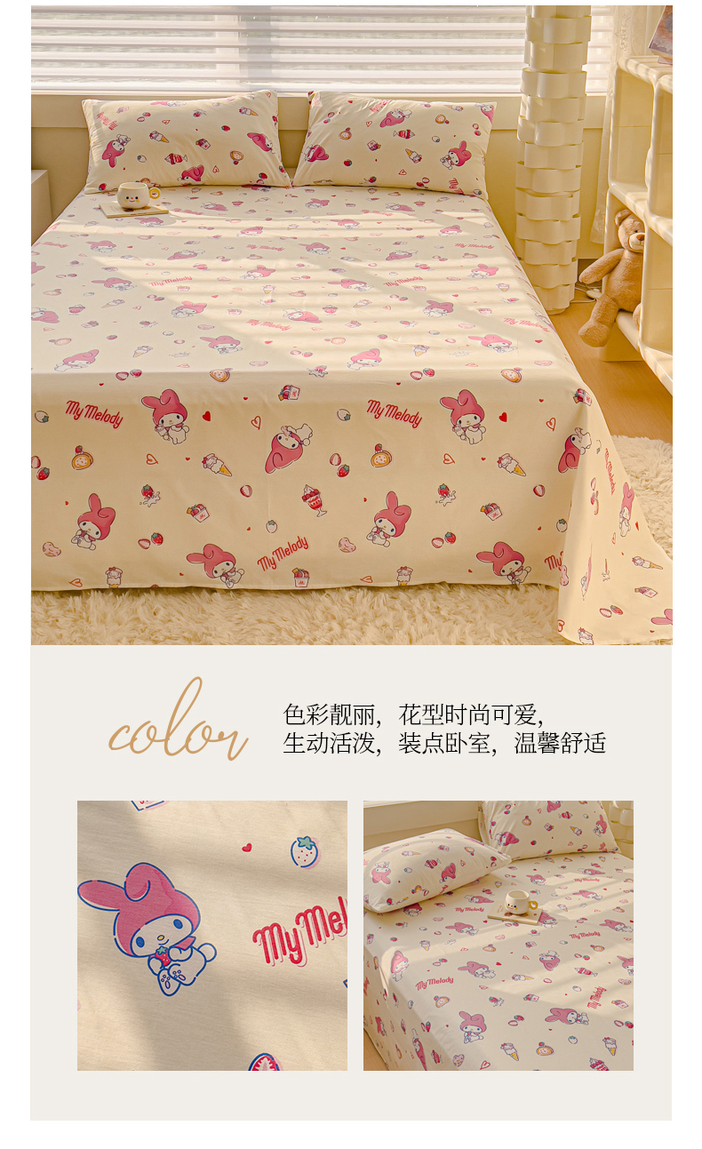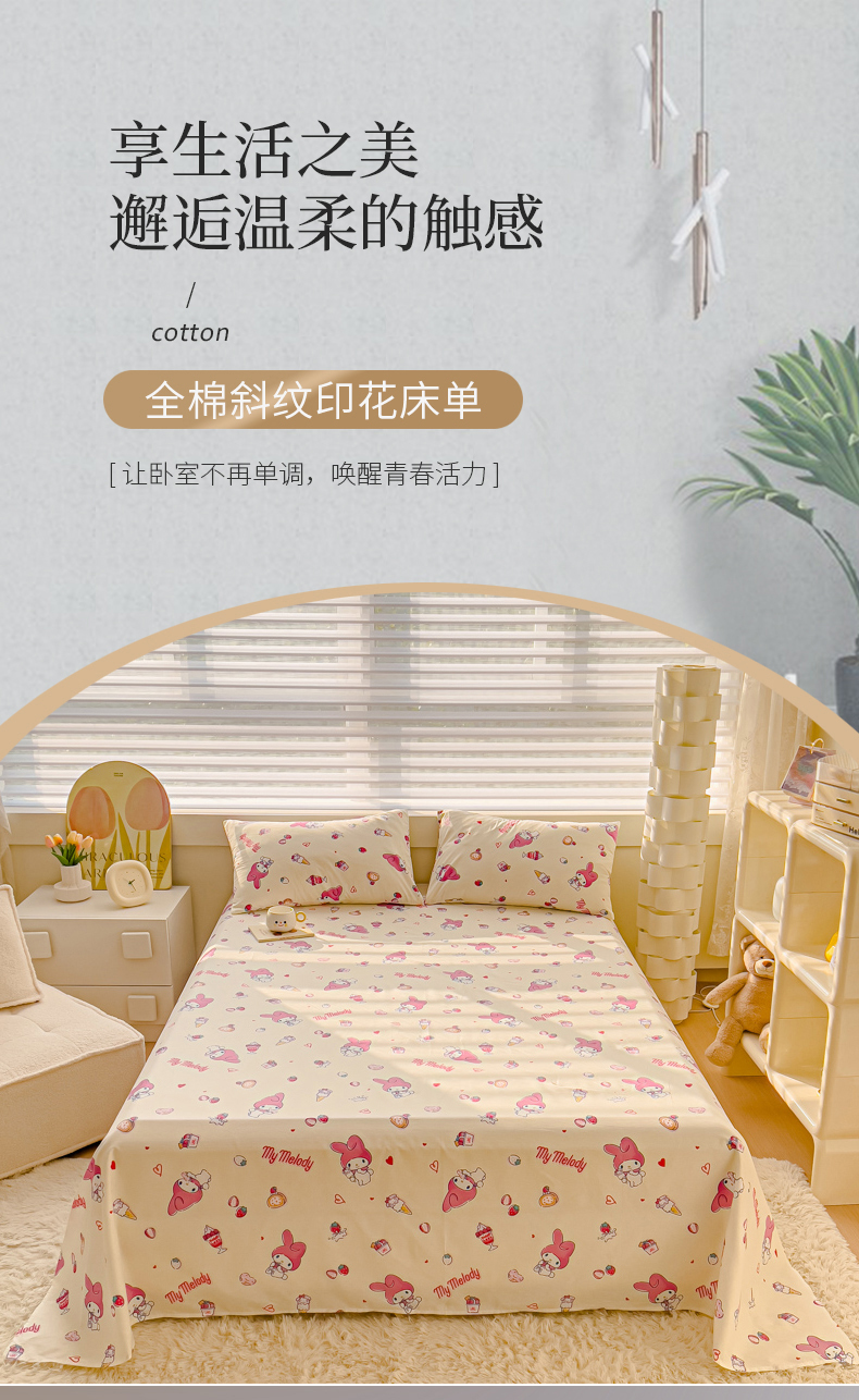 (总)金丝鸟家纺 2025新款三丽鸥系列全棉斜纹13370单品床单,波点美乐蒂,彩虹大耳朵狗,条纹库洛米,晚安kt