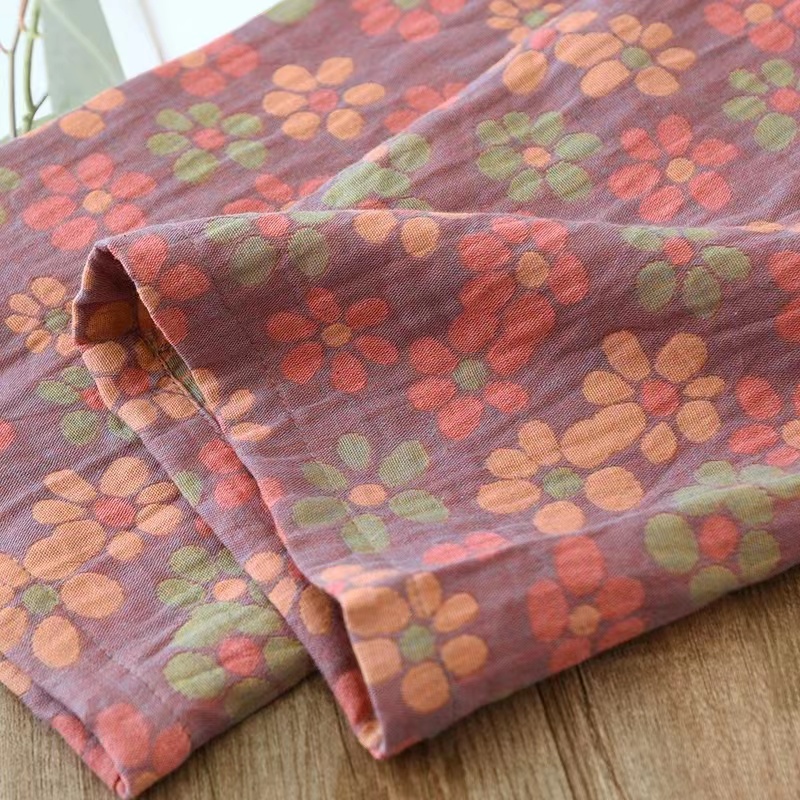 洛兰沙家居馆【只代发】【只代发】 2024新款民族风碎花春秋季女士睡衣长袖纯棉双层纱布妈妈中老年家居服套装 ls101