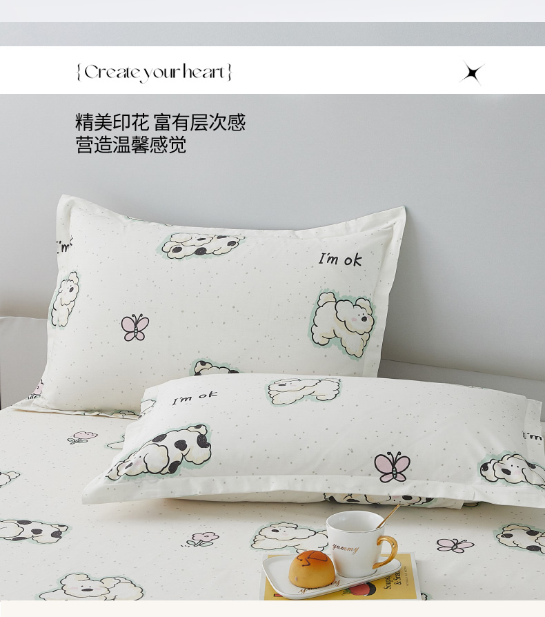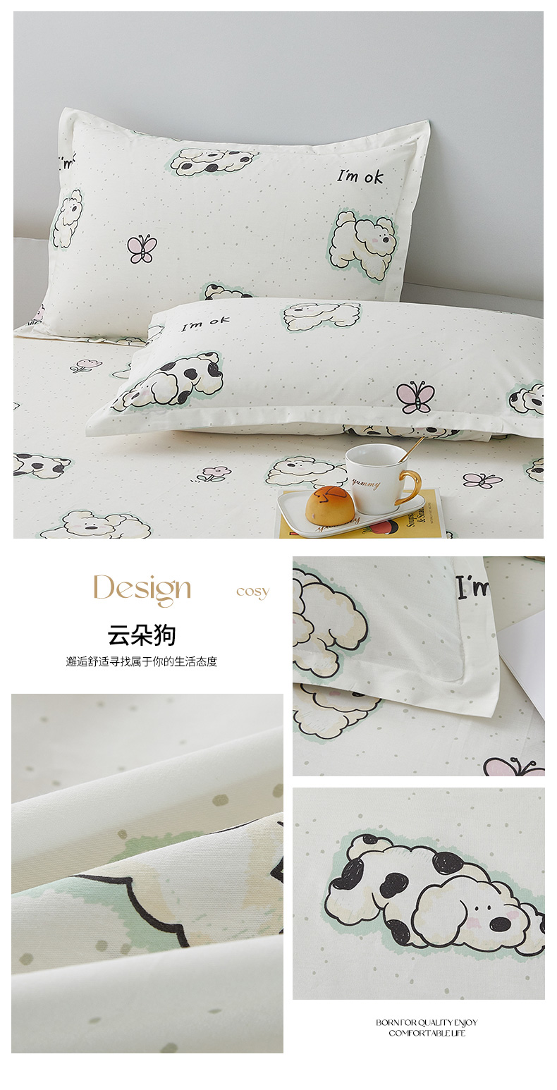 翎盈家纺 2024款纯棉13372印花单品枕套 云朵狗