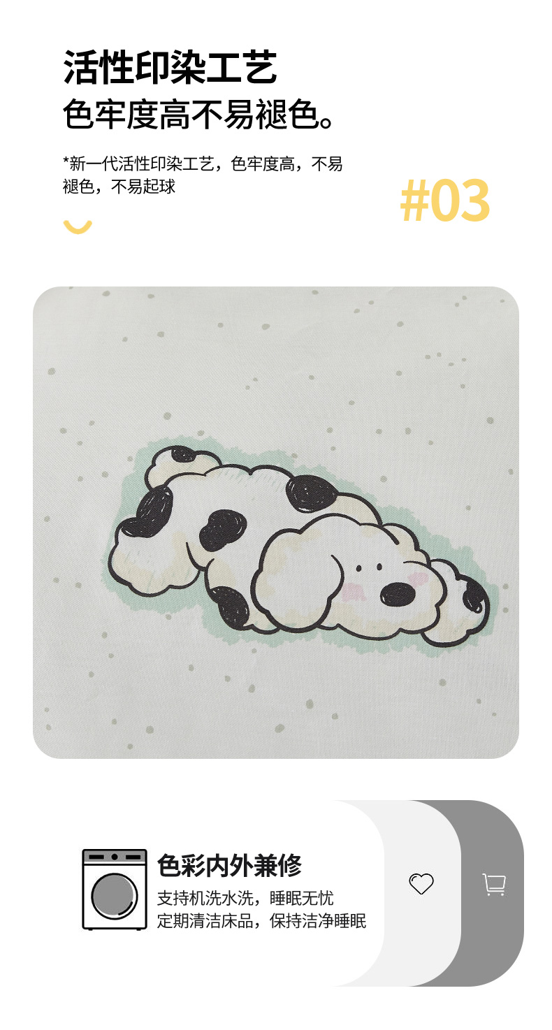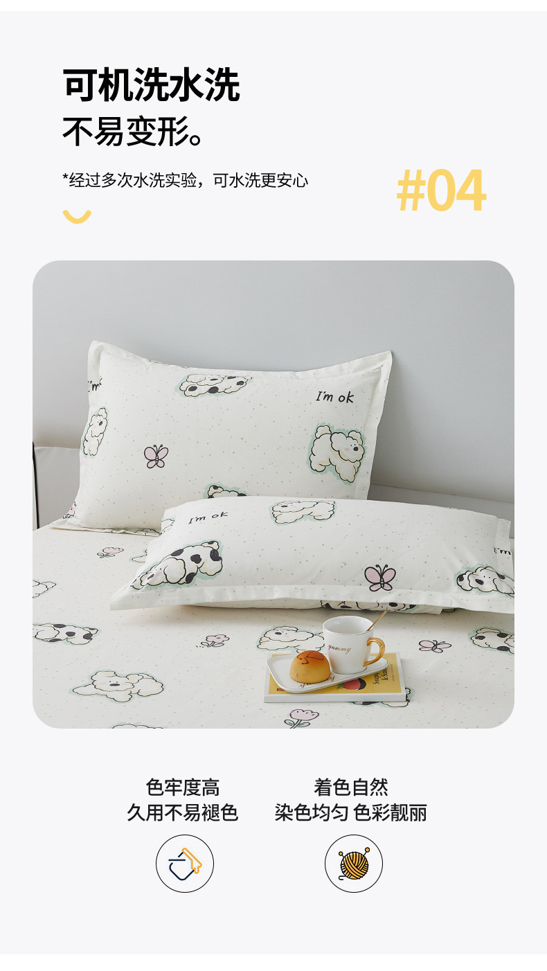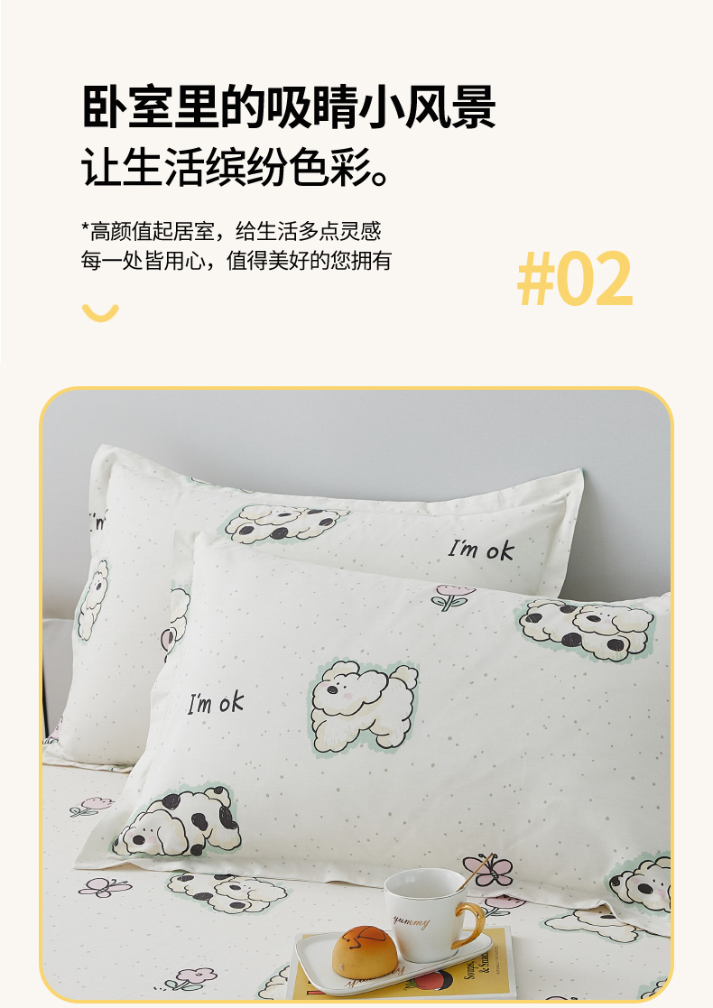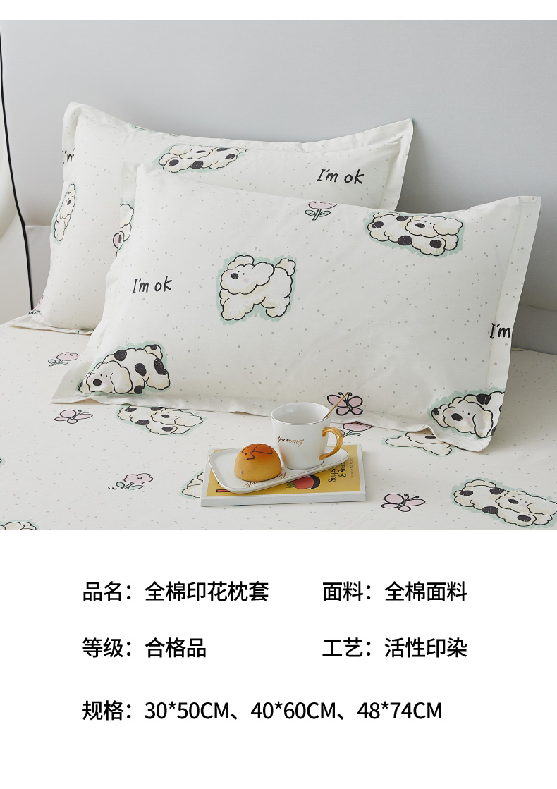 商品名称:翎盈家纺 2024款纯棉13372印花单品枕套 云朵狗