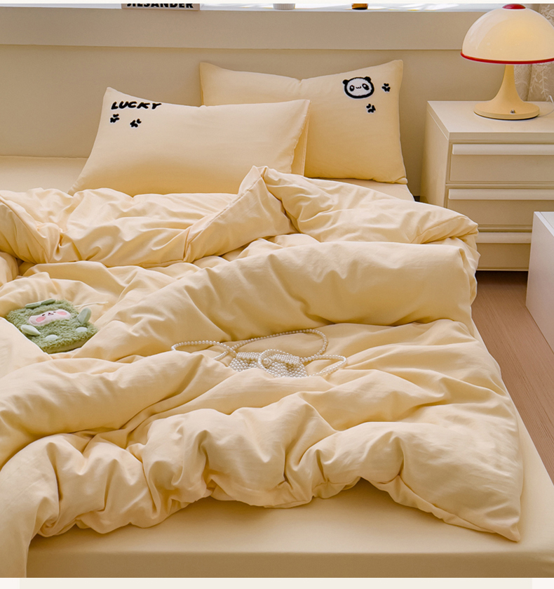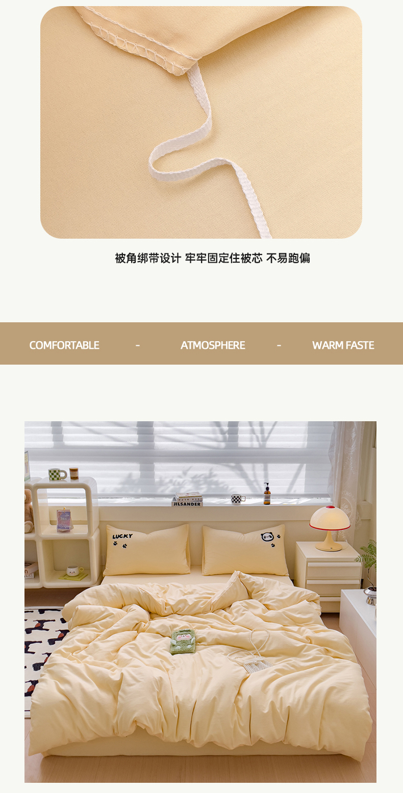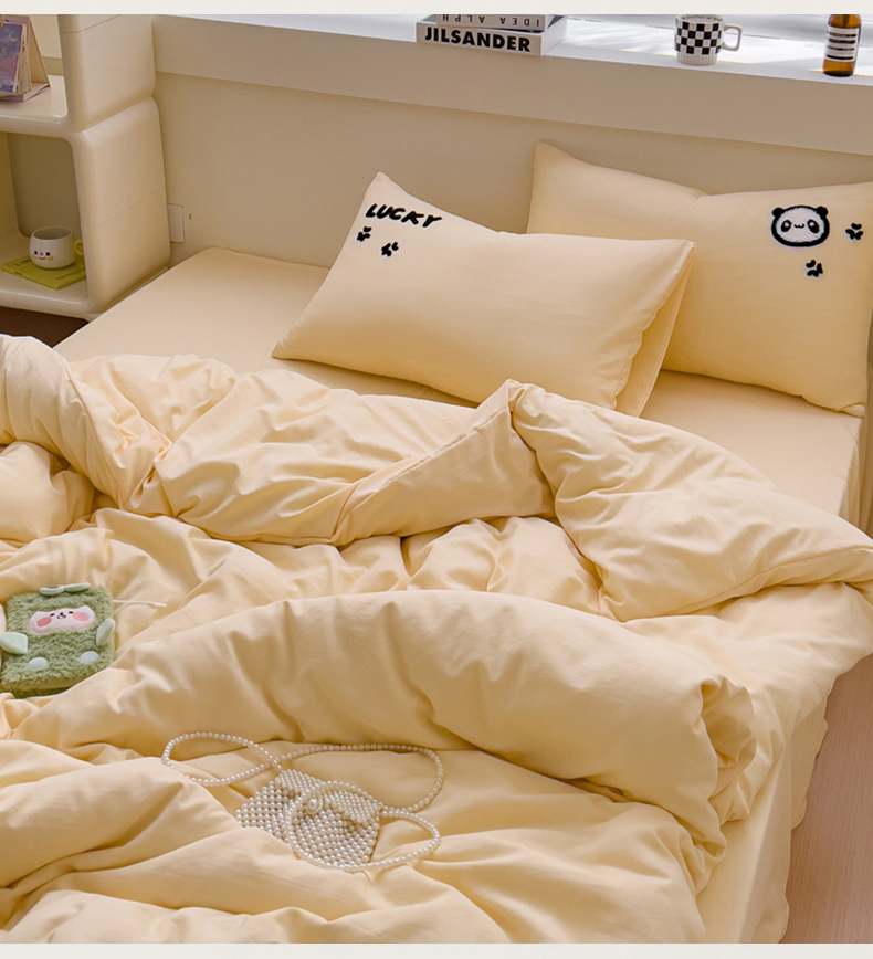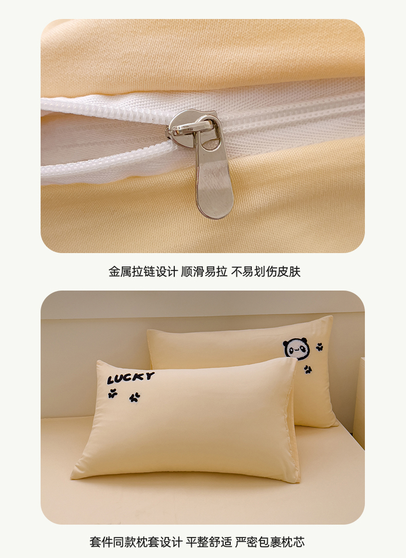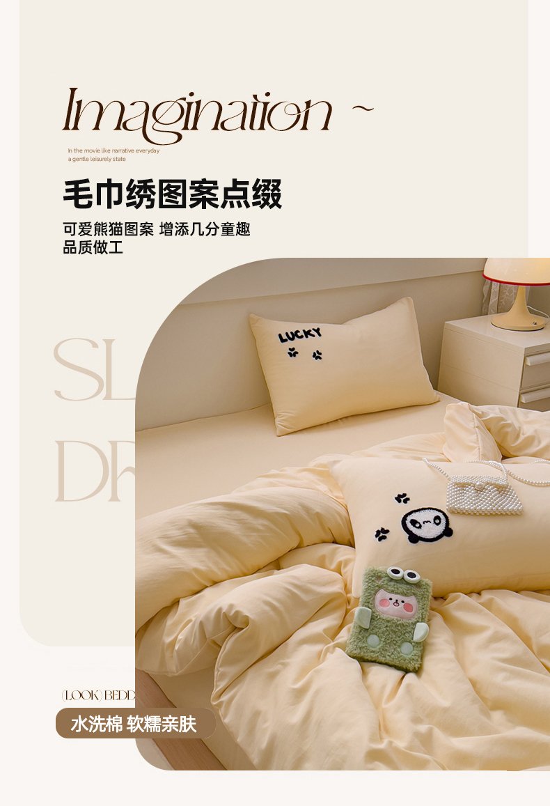 当前位置: 91家纺网 > 商品网购 > 床品套件 > 四件套 > 普通磨毛四件套 > 梦嘉居 2024新款直播热款A类ins风多巴胺色超柔亲肤磨毛纯色水洗棉毛巾绣套件-四件套 幸运熊猫-柠檬黄