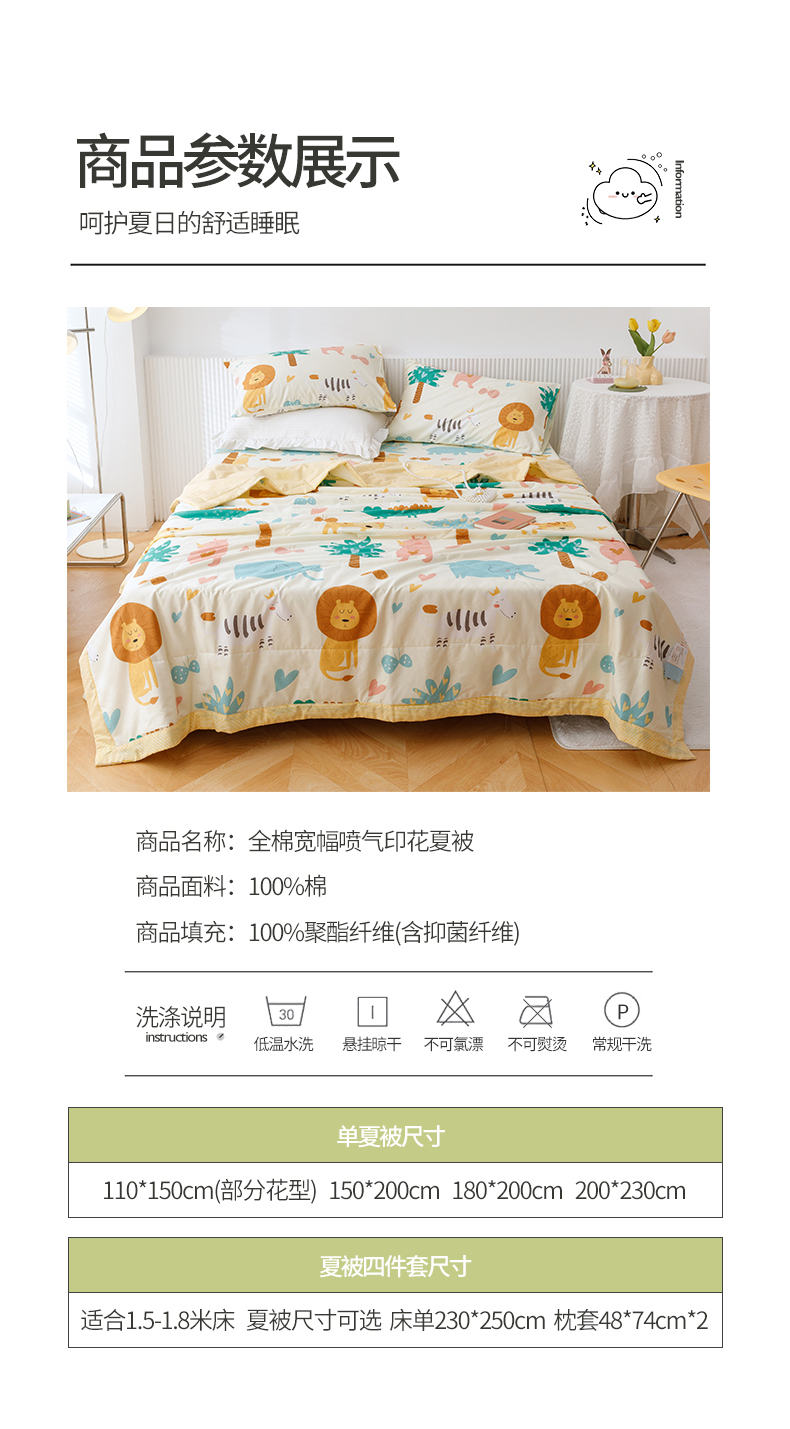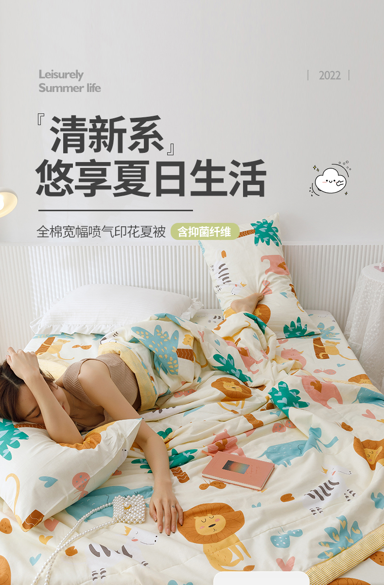 莱宁被业 2024新款全棉宽幅喷气印花夏被 吉米乐园