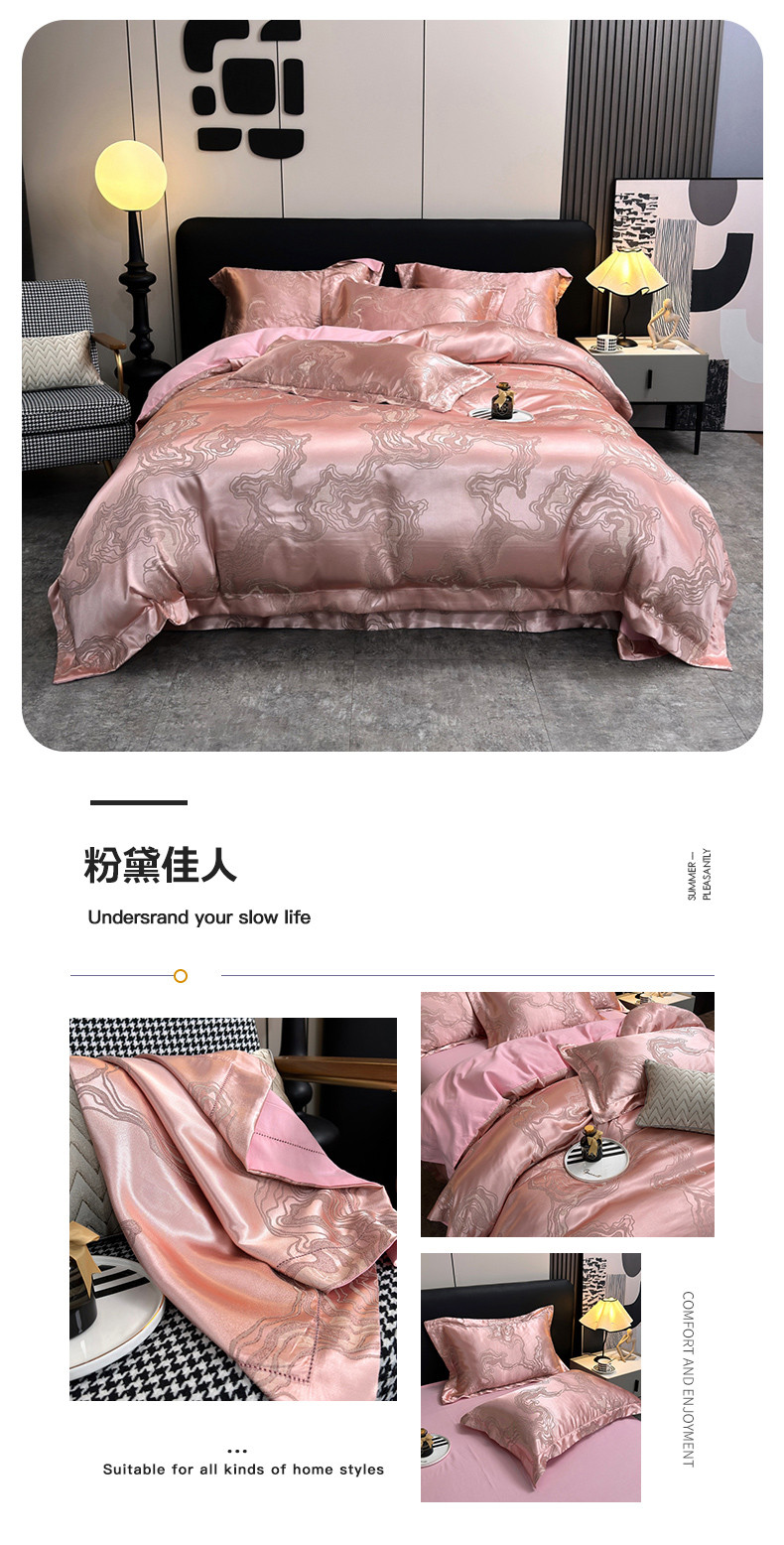商品名称:三沁2024网红直播爆款全棉高精密色织贡缎提花镂空系列四件套 粉黛佳人