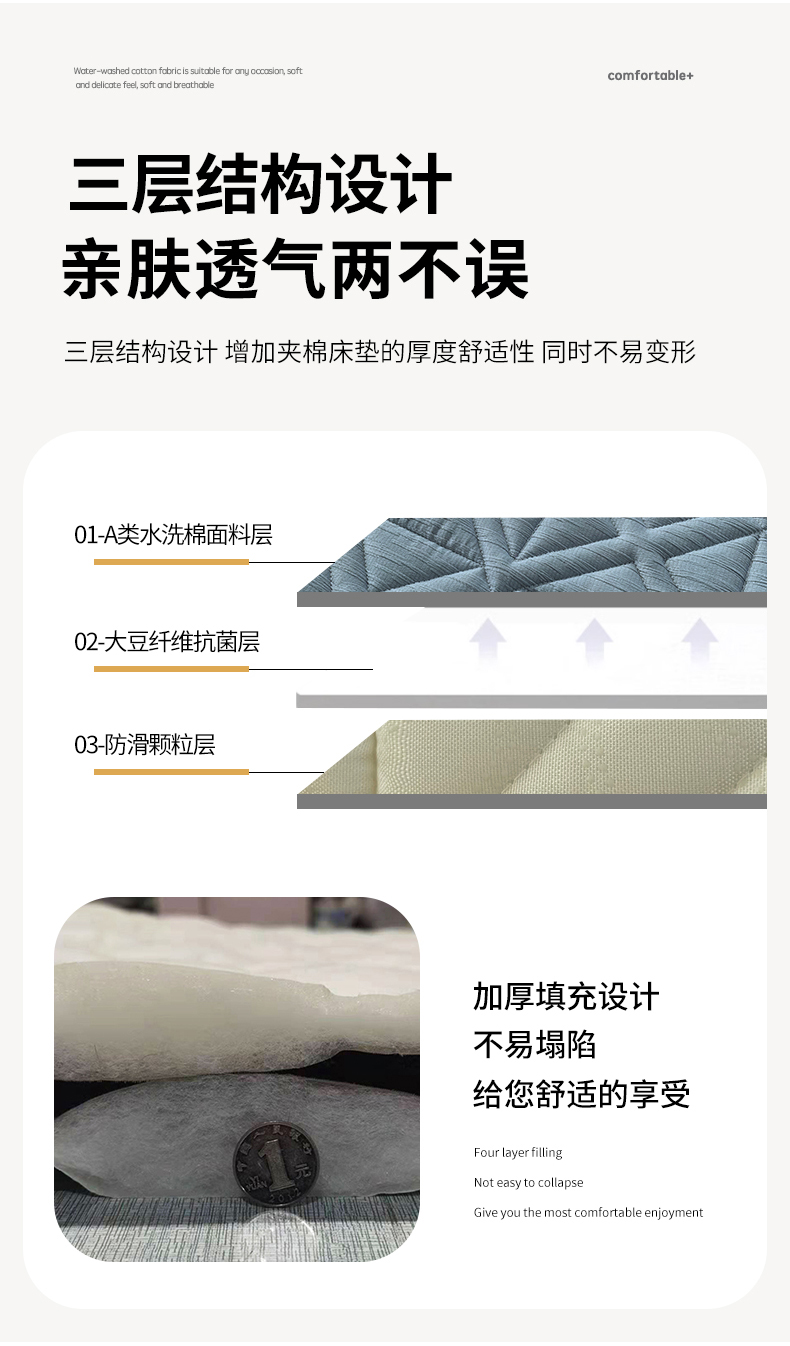 商品名称:(总)鑫钰 2024新款A类水洗棉大豆夹棉床护垫