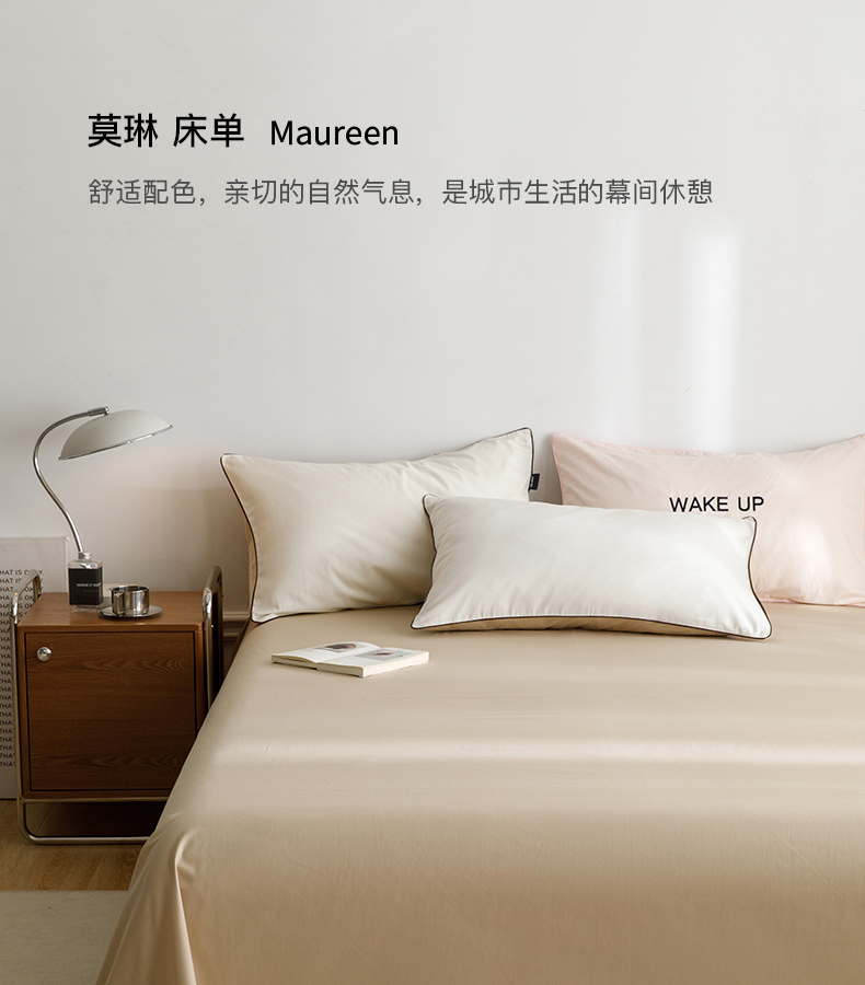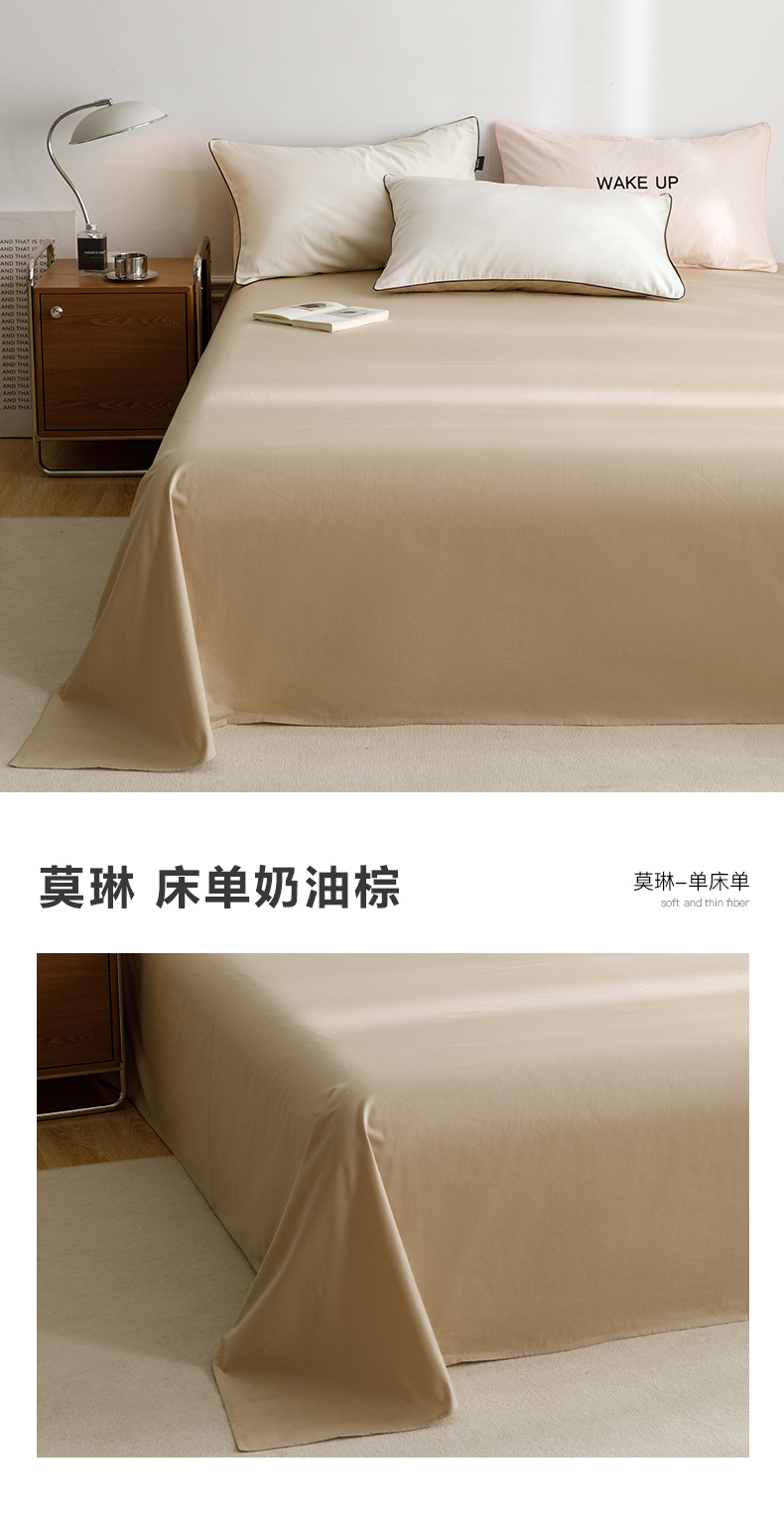 卡姿家纺 2024春夏纯色双拼嵌绳款单床单—莫琳 莫琳 床单奶油棕