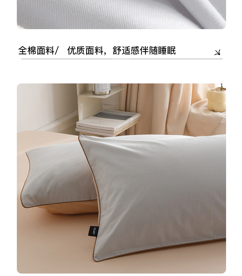 商品名称:卡姿家纺 2024春夏纯色双拼嵌绳款单枕套—莫琳 莫琳 枕套灰杏