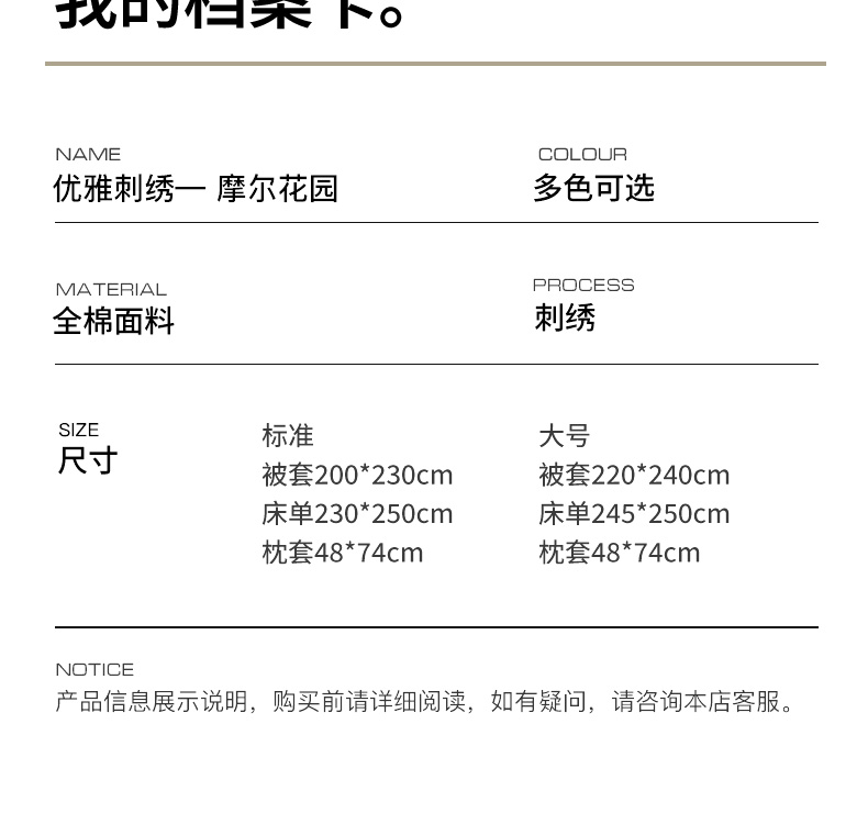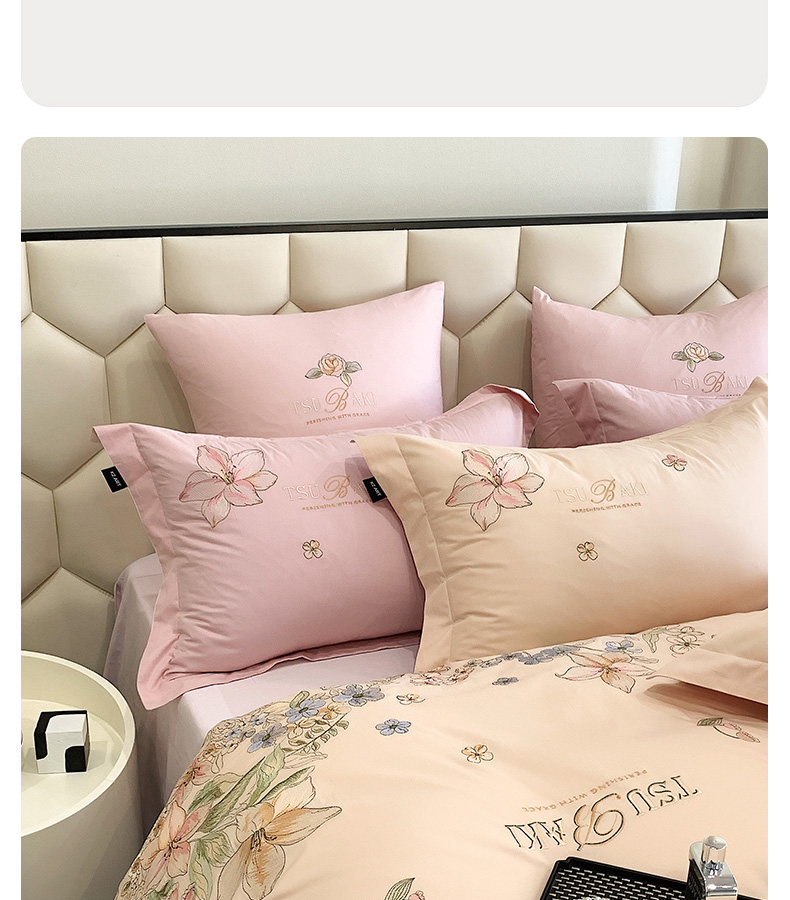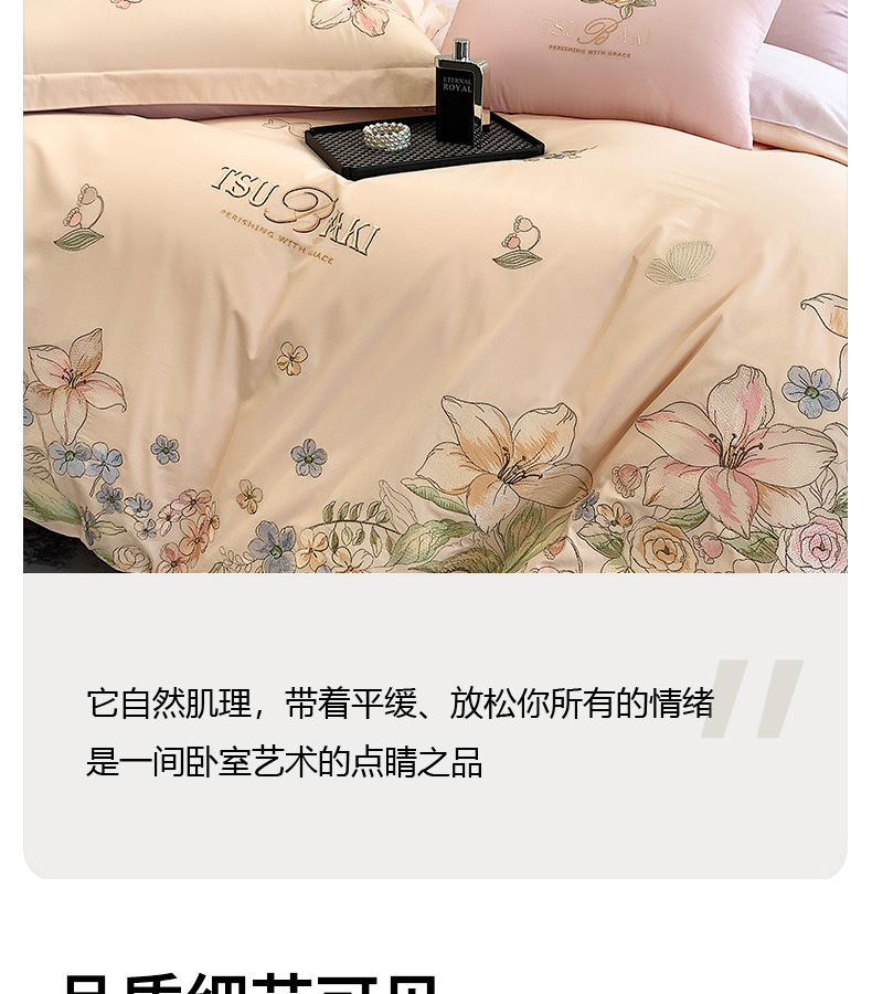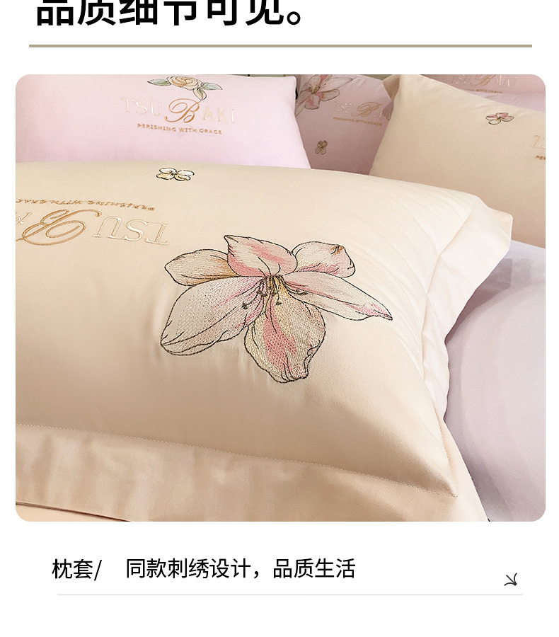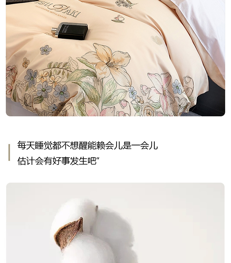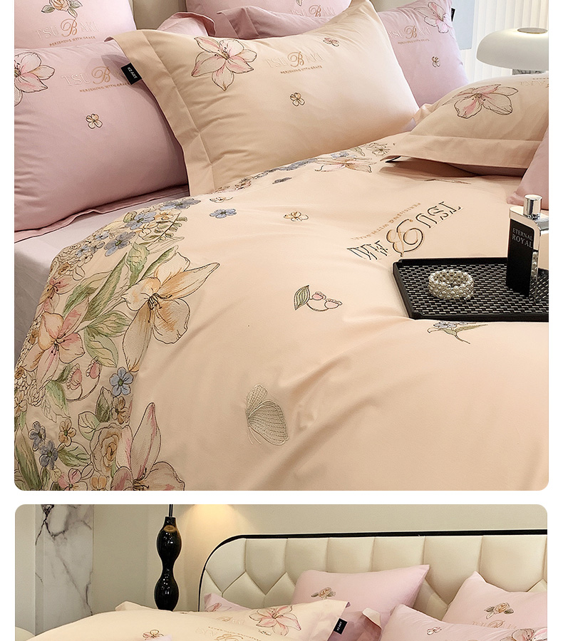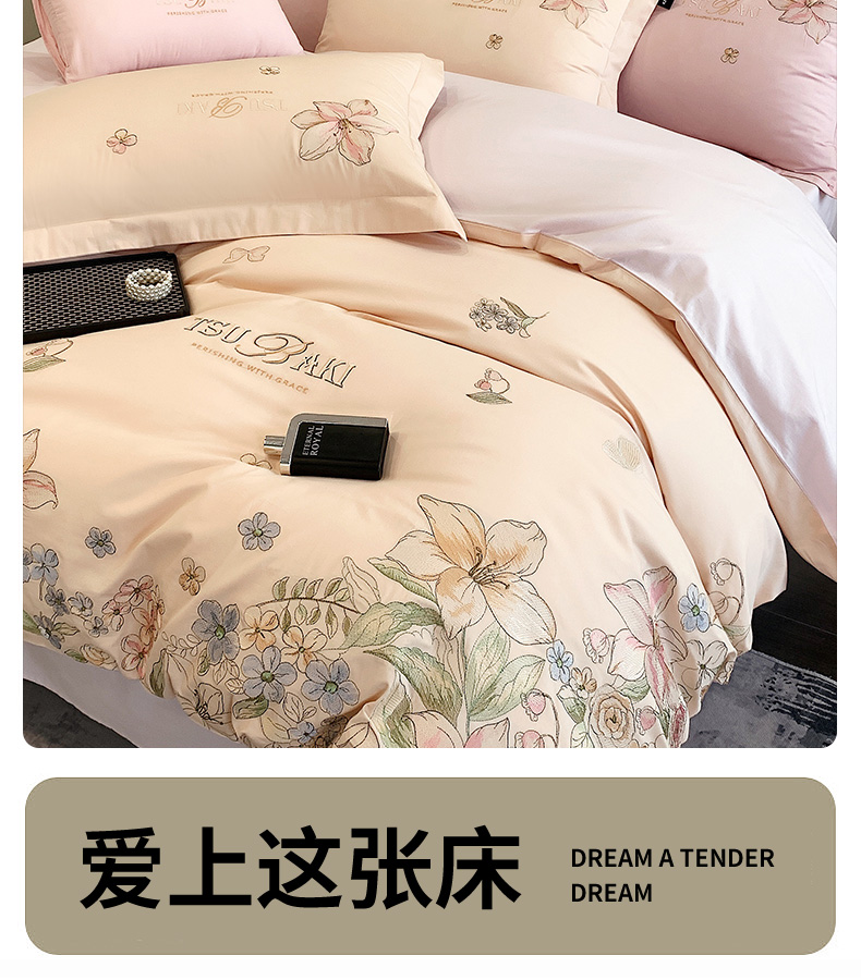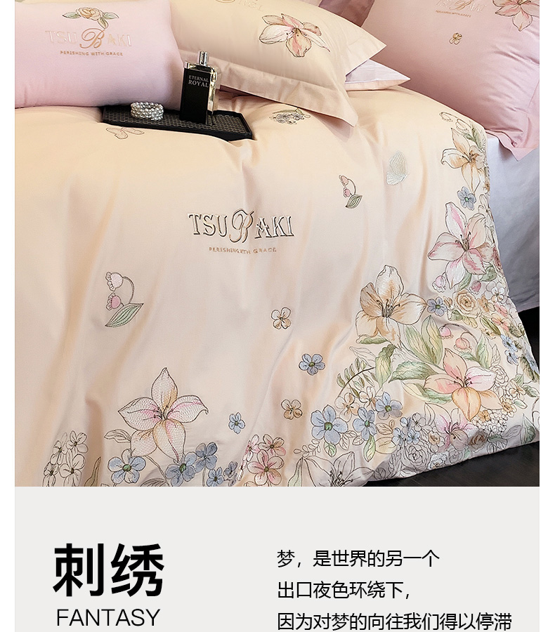 商品名称:卡姿家纺 2024春夏优雅刺绣四件套— 摩尔花园1 摩尔花园米杏
