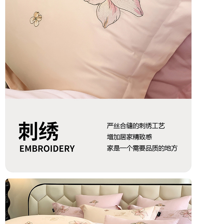 (总)卡姿家纺 2025春夏新款轻奢优雅刺绣金丝羽系列四件套,金丝羽白,金丝羽粉,金丝羽蓝,金丝羽紫