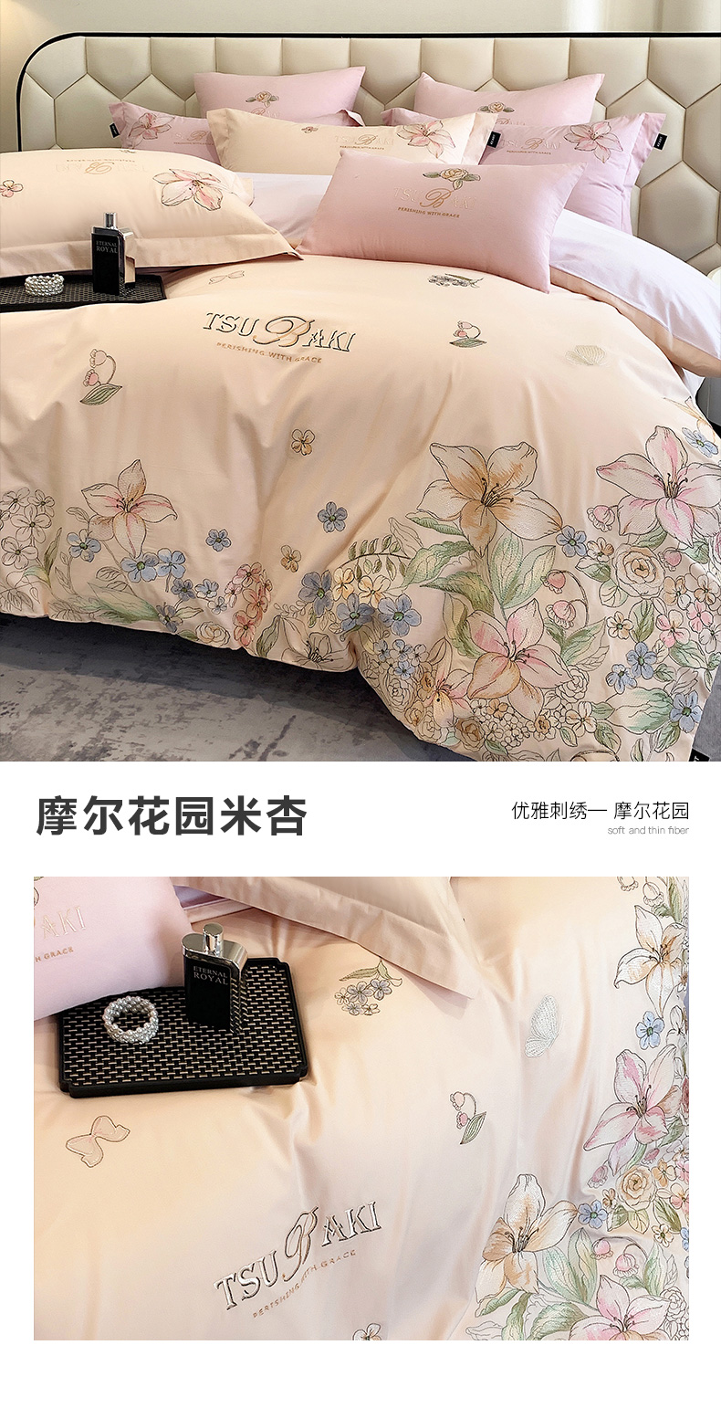 卡姿家纺 2024春夏优雅刺绣四件套— 摩尔花园1 摩尔花园米杏