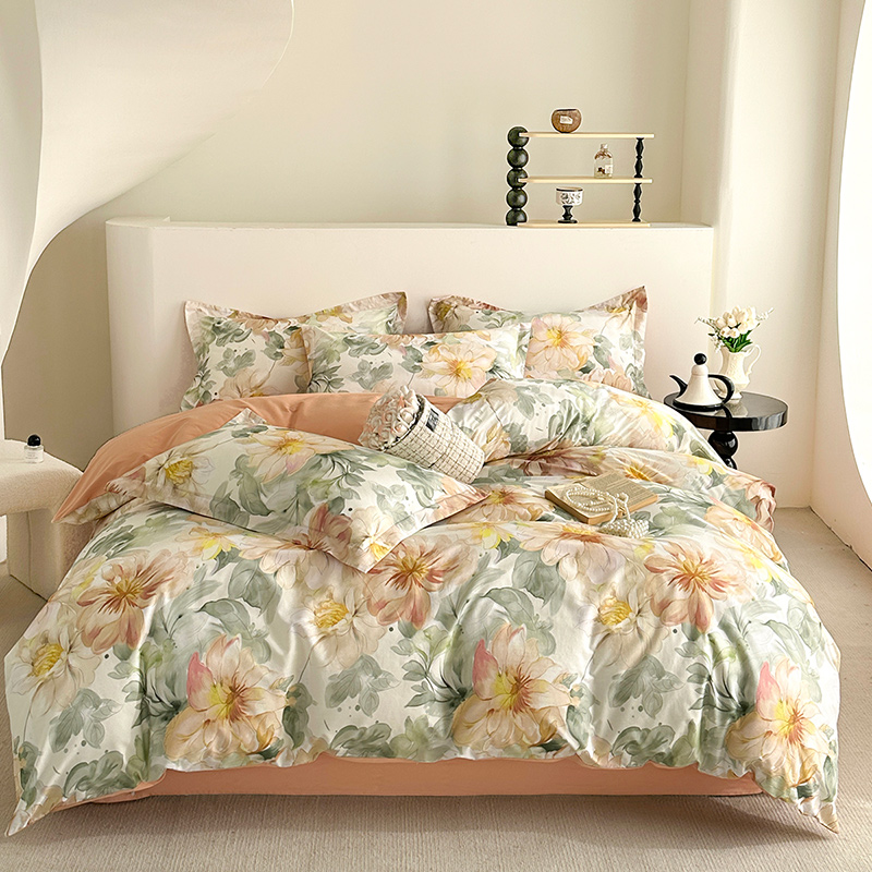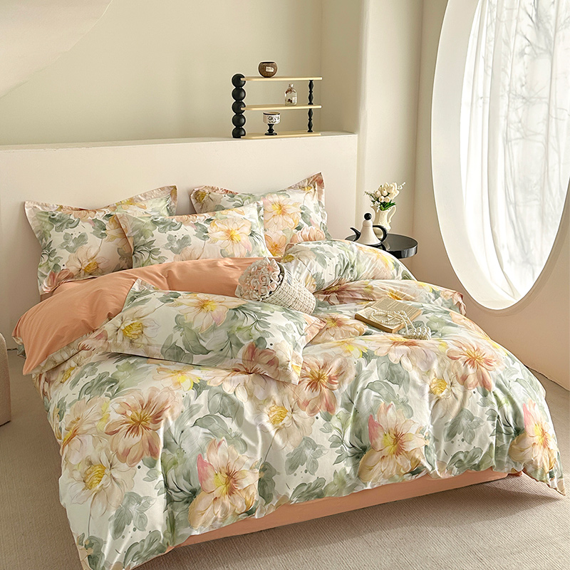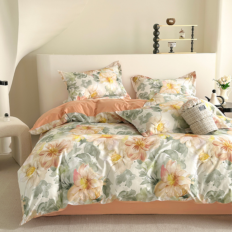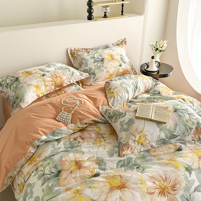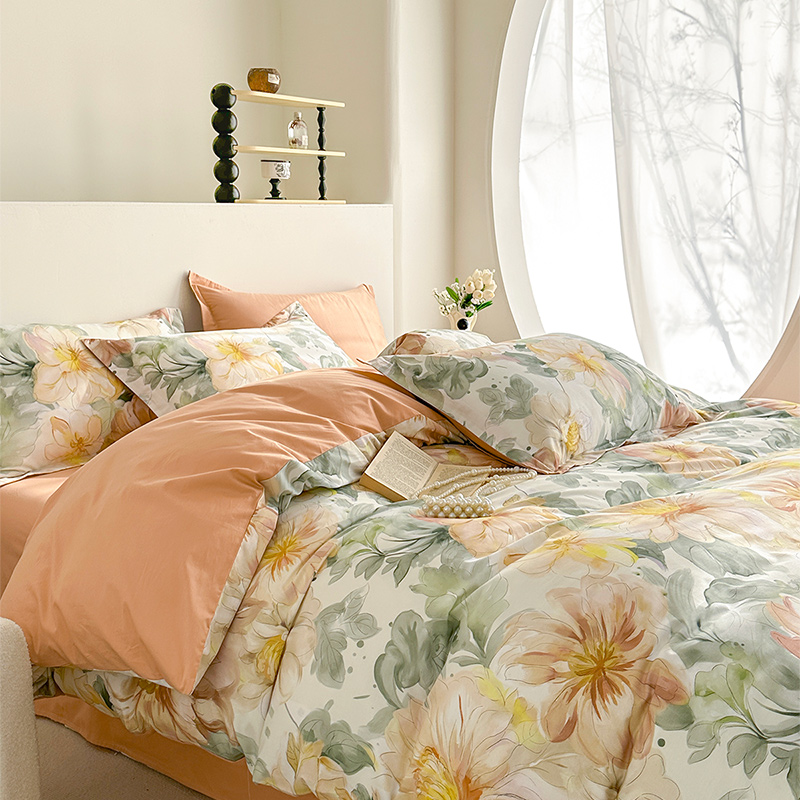 元元被芯 2024新款全棉长绒棉数码印花四件套全棉四件套纯棉四件套 花的旅途-桔