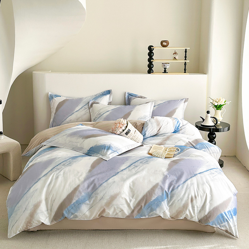 商品名称: 元元被芯 2024新款全棉长绒棉数码印花四件套全棉四件套纯棉四件套 时光笔墨-兰