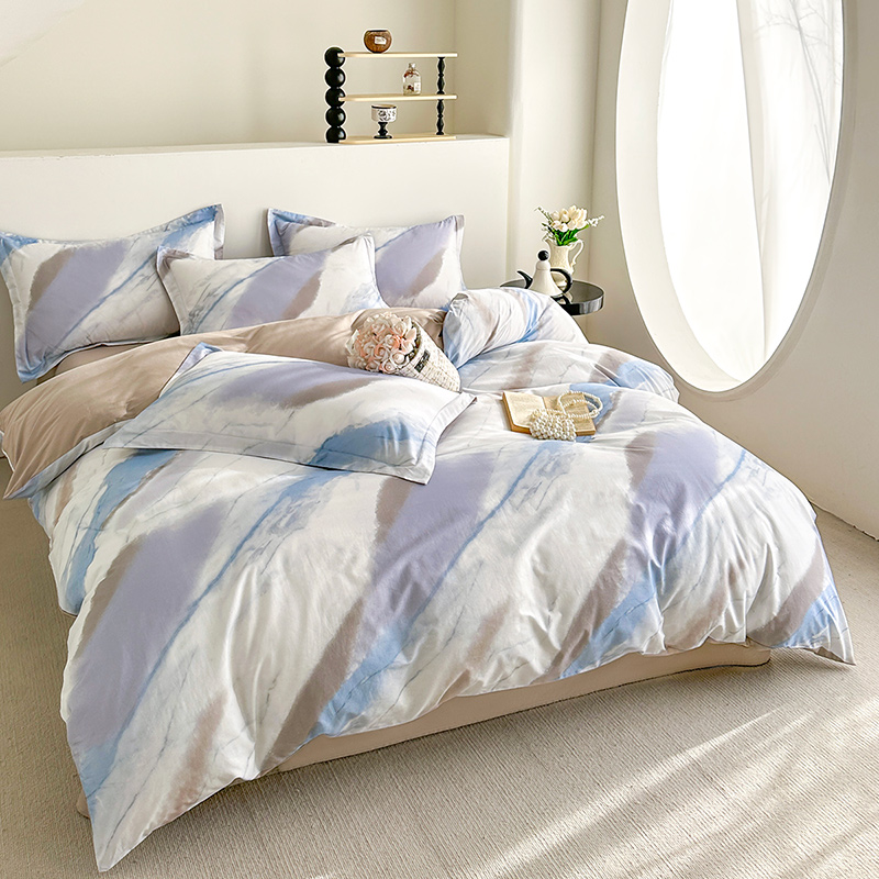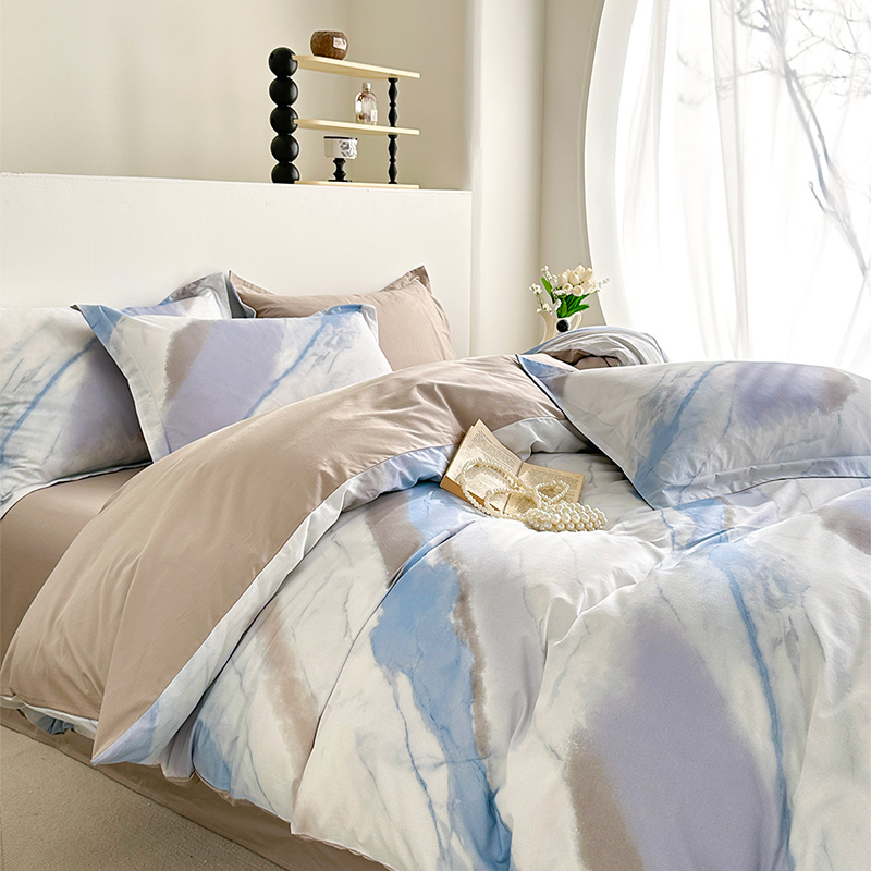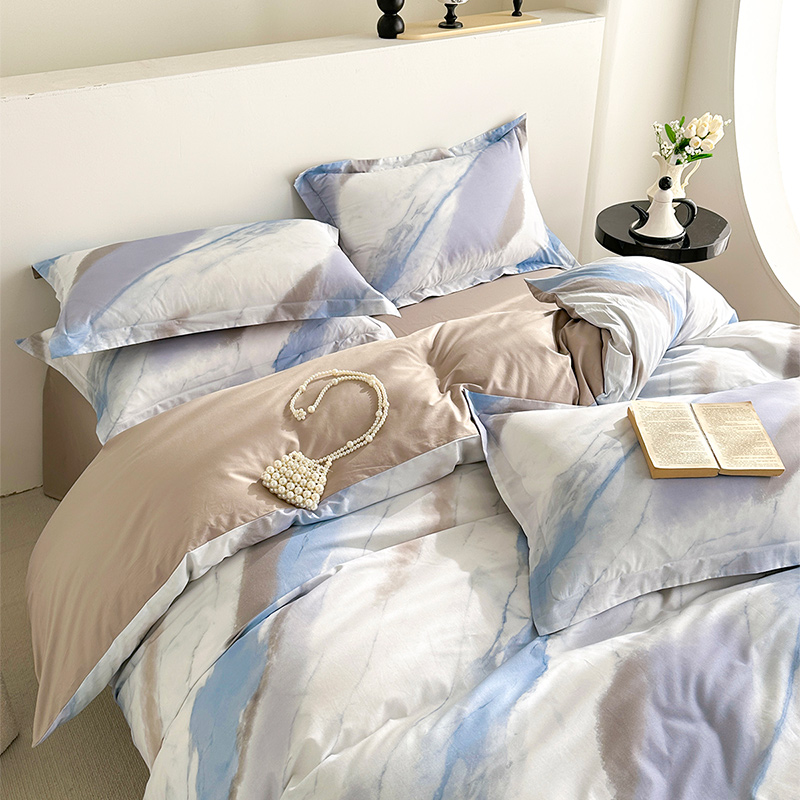 元元被芯 2024新款全棉长绒棉数码印花四件套全棉四件套纯棉四件套 时光笔墨-兰