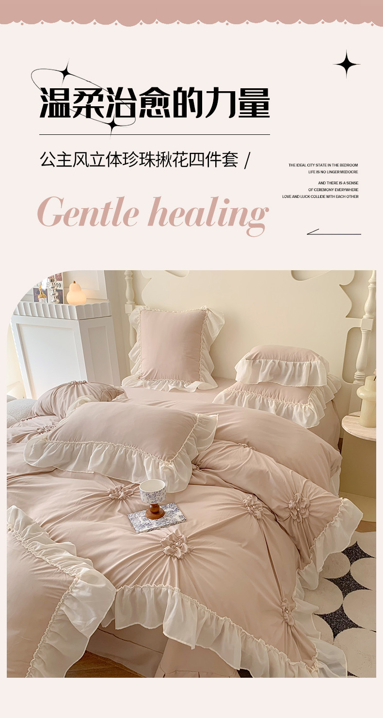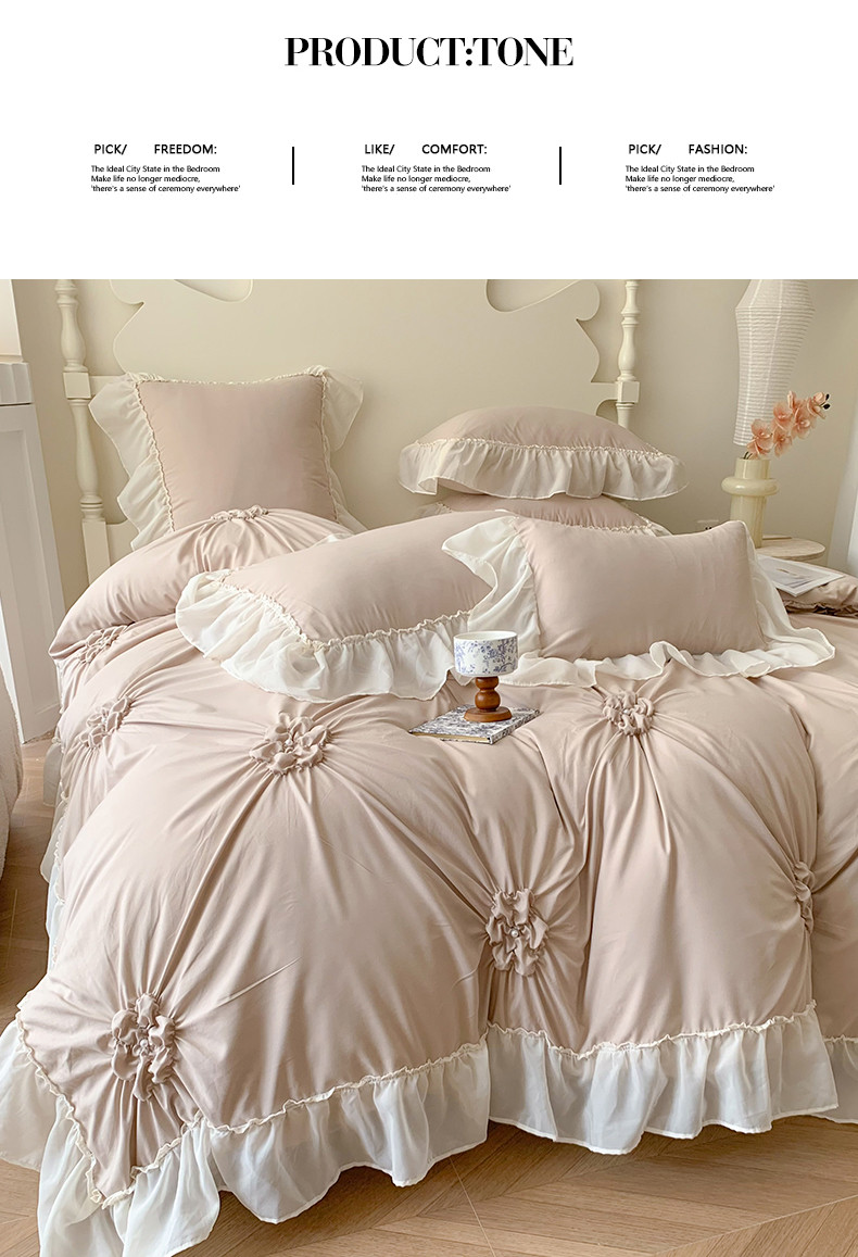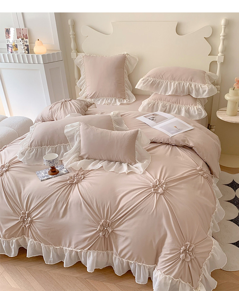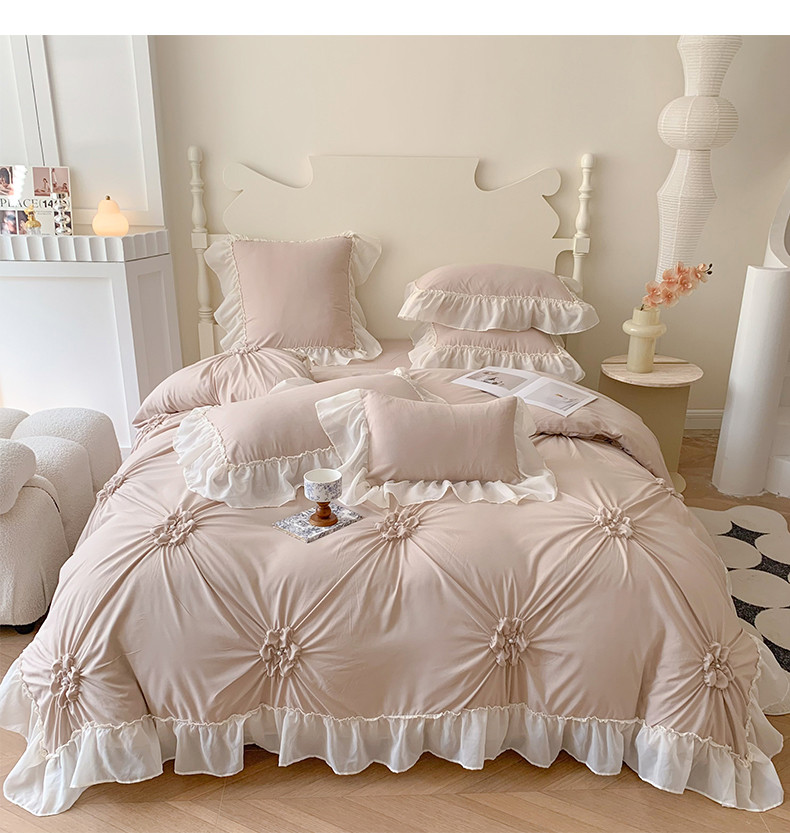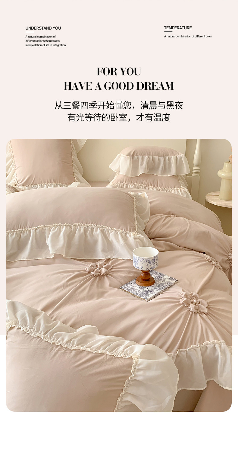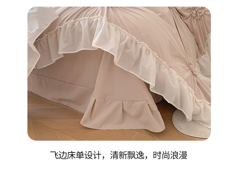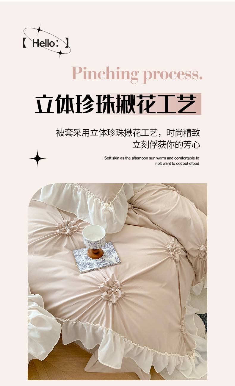 商品名称:吾欢心 2025新款珍妮系列珍珠揪花四件套 珍妮咖