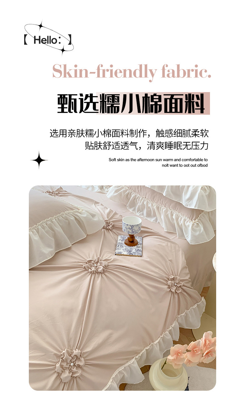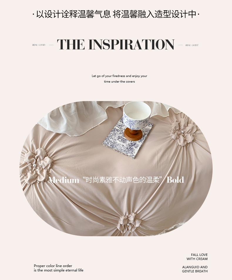 吾欢心 2025新款珍妮系列珍珠揪花四件套 珍妮咖