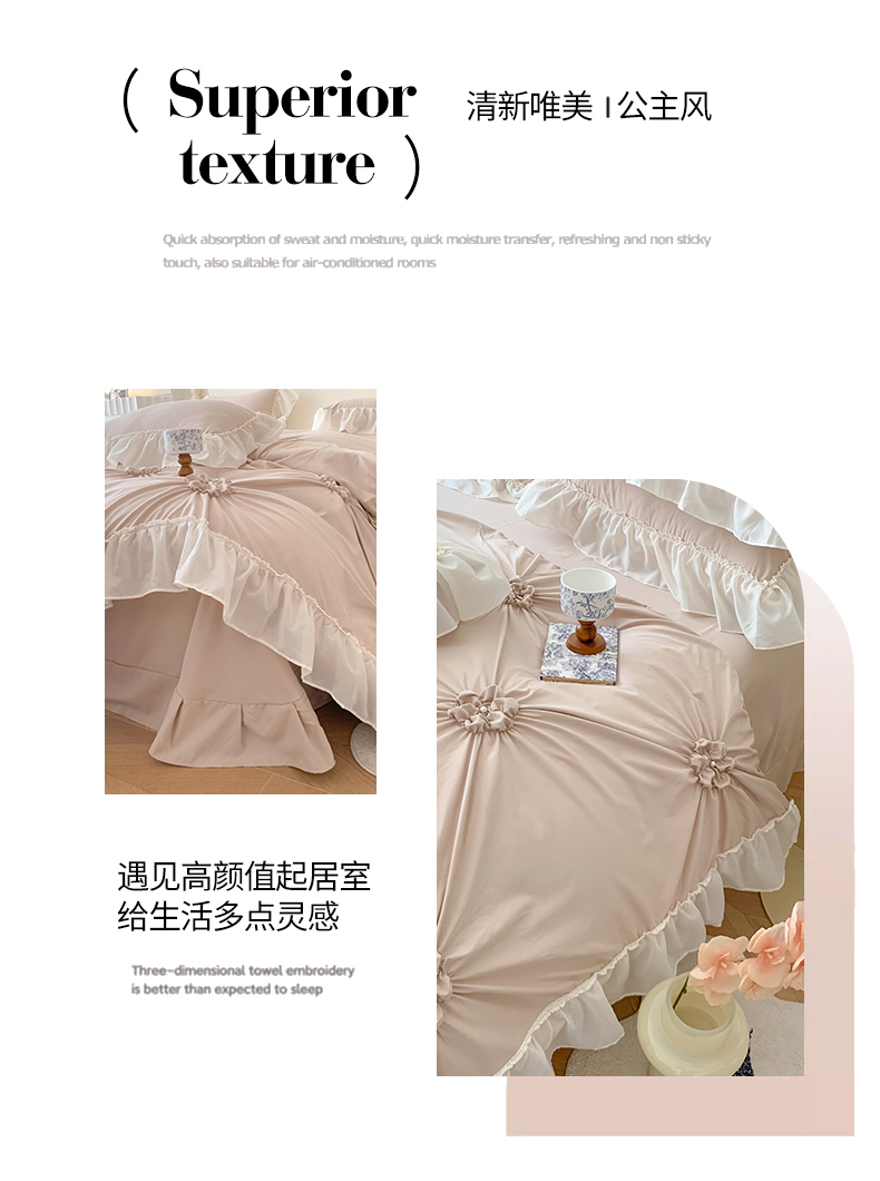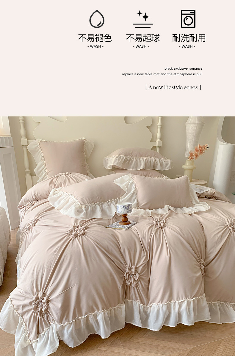(总)吾欢心 2025秋冬新款加厚雕花绒婴儿绒安娜贝尔系列法式双层花边四件套,安娜贝尔白,安娜贝尔粉,安娜贝尔咖,安娜贝尔蓝,安娜贝尔绿,安娜贝尔紫