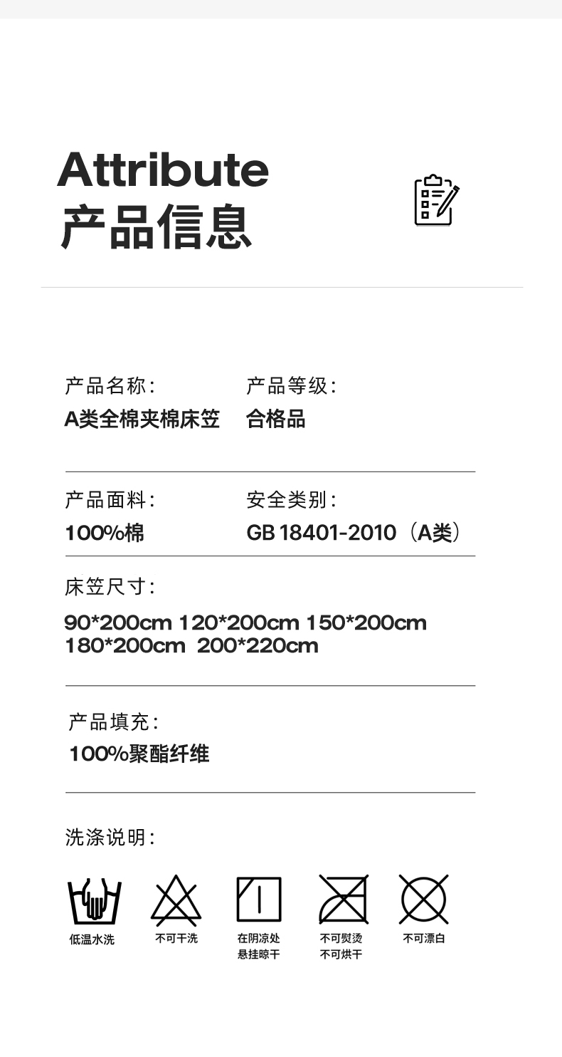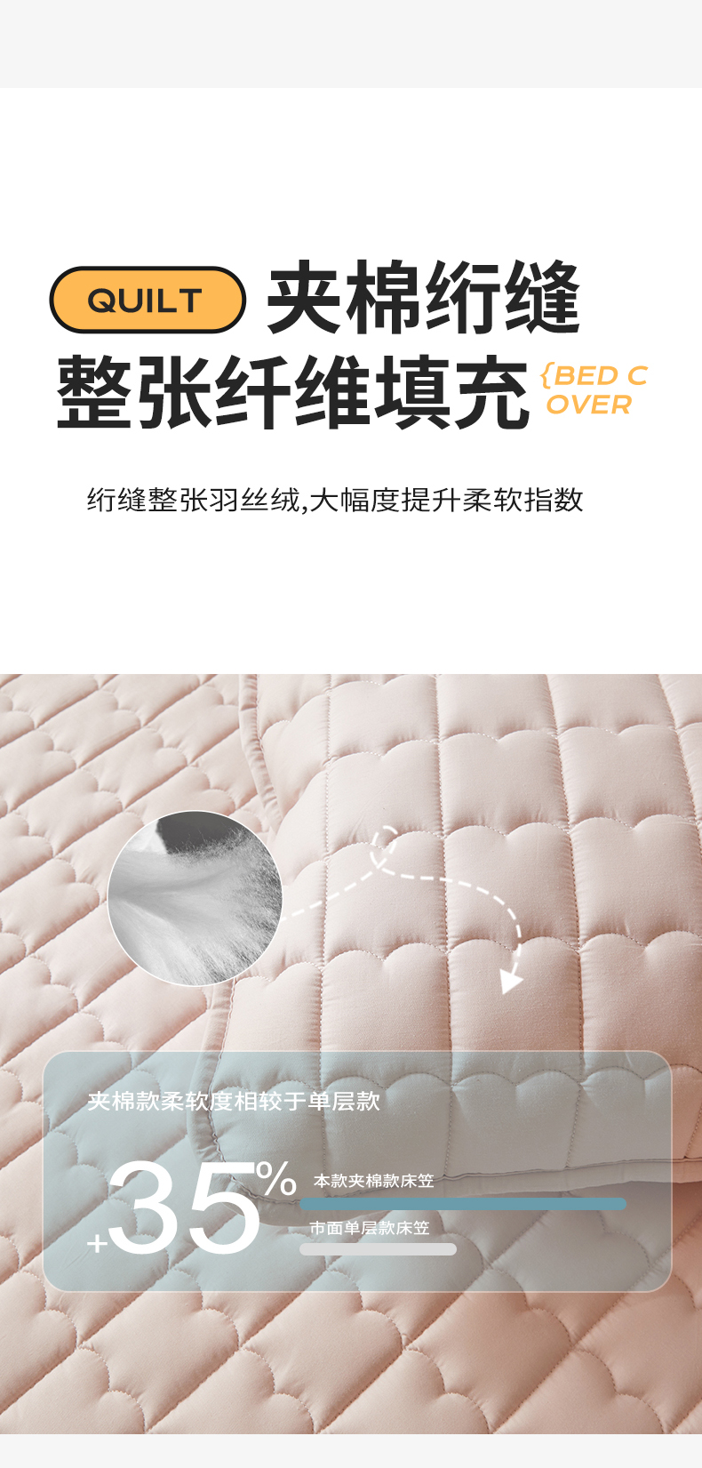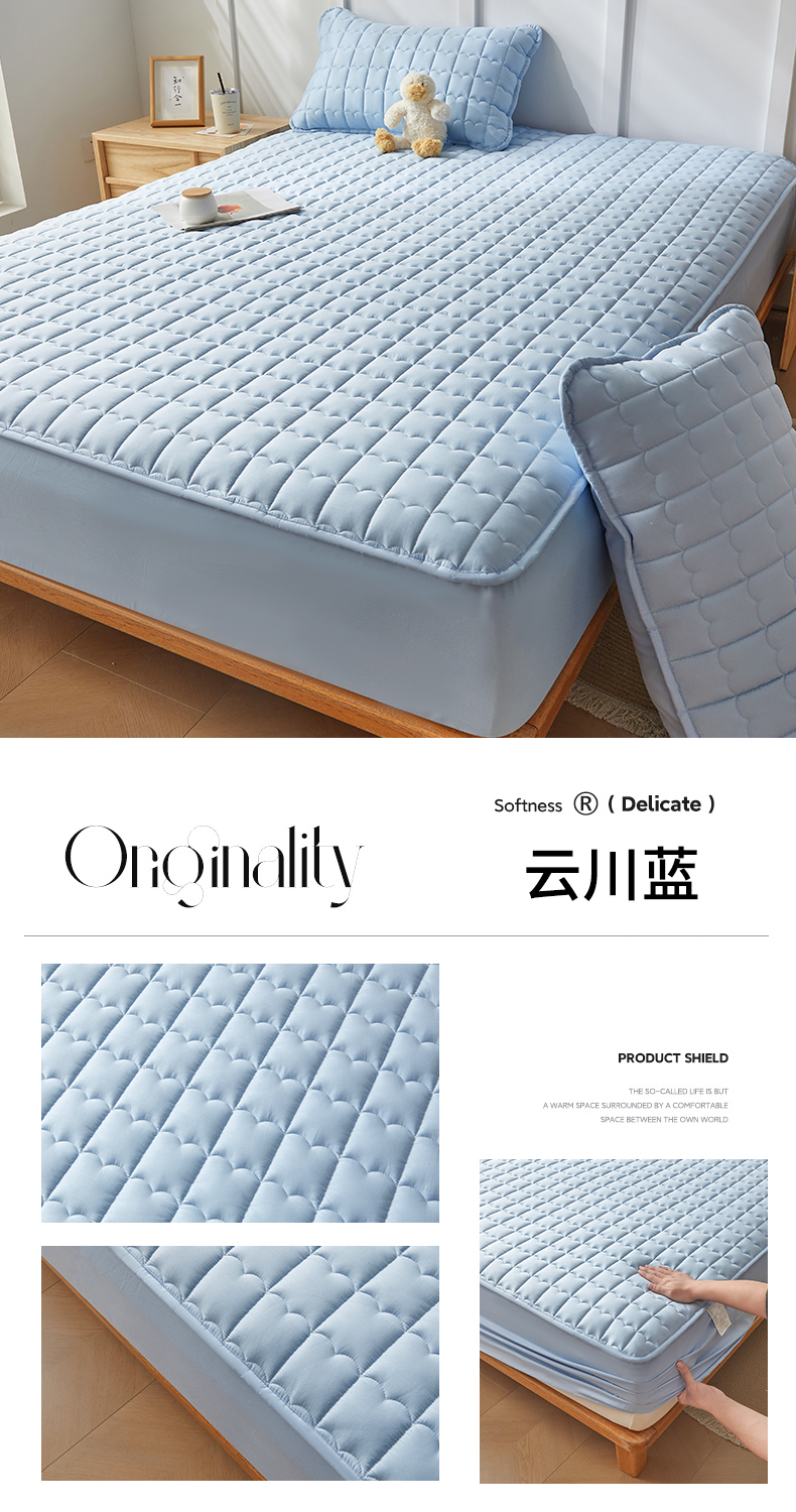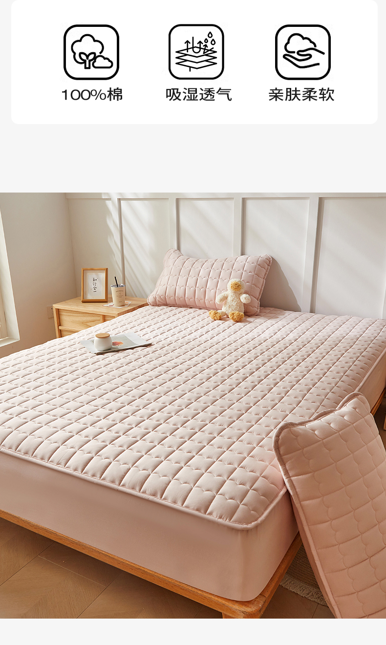 商品名称:(总)雯豆家纺 2024新款A类全棉夹棉床笠三件套纯色纯棉床笠