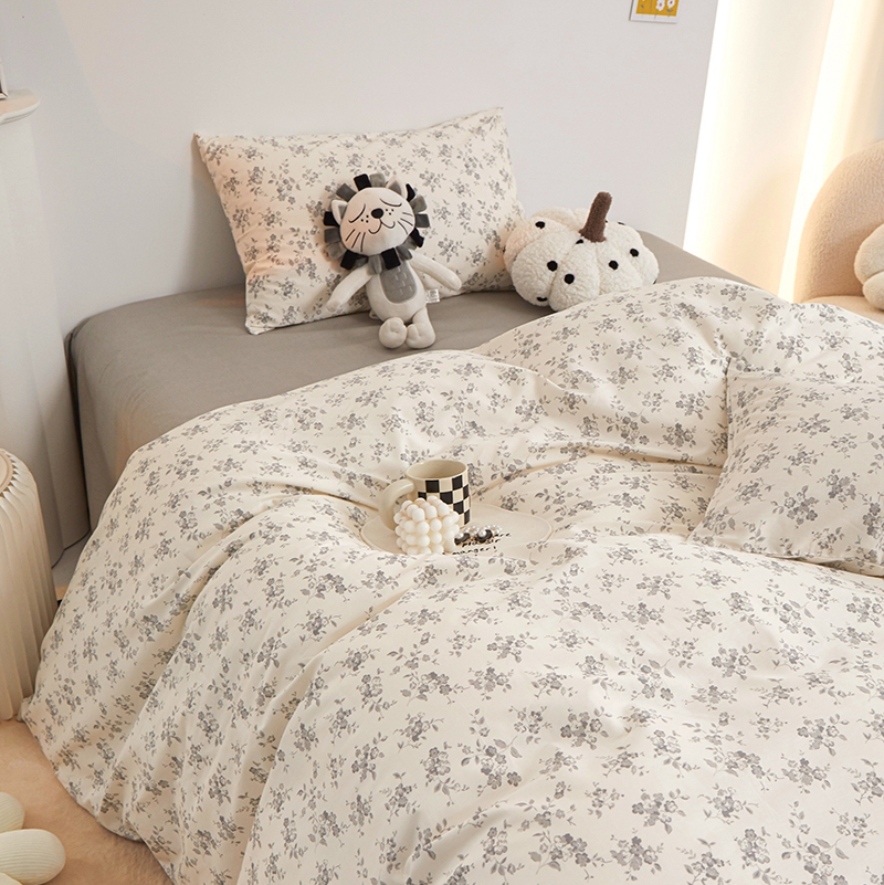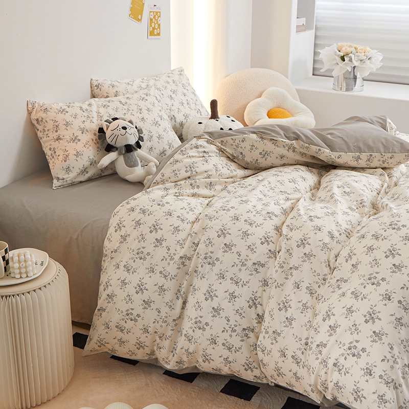 一米阳光 2024新款小清新AB版全棉四件套 沁园-灰