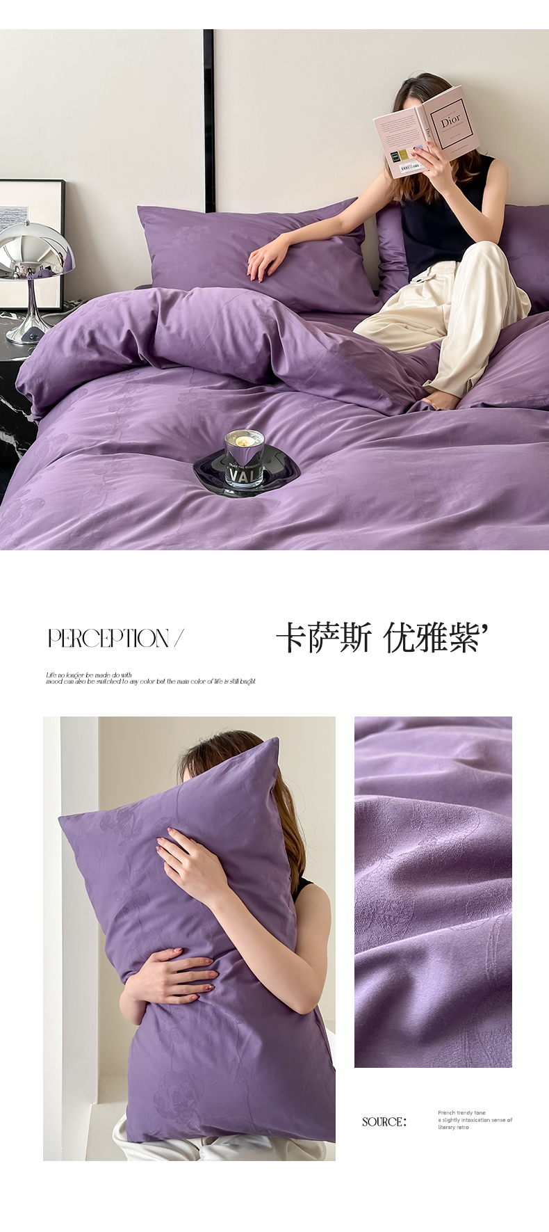 商品名称:玖弘 2024新款染色提花系列四件套 卡萨斯 优雅紫