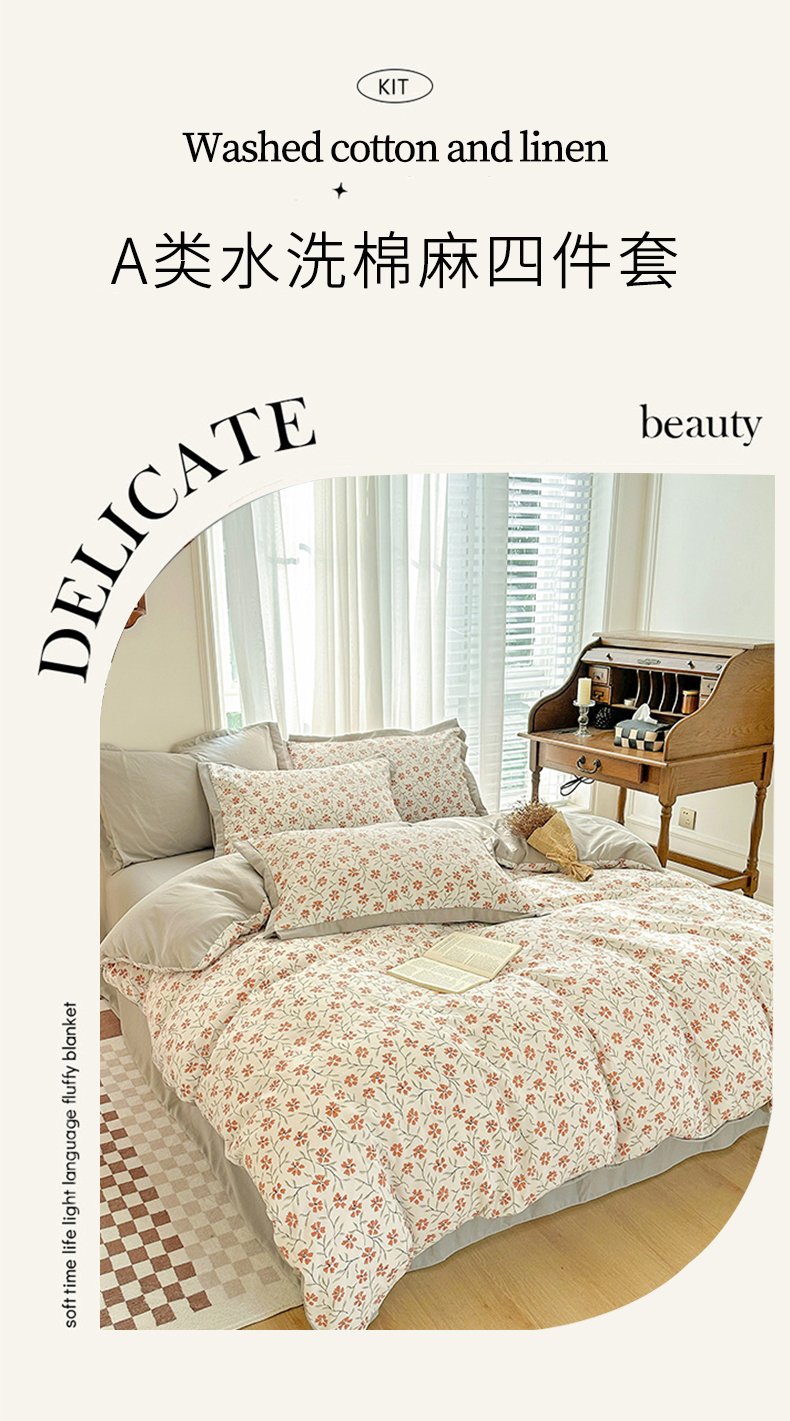 当前位置: 91家纺网 > 商品网购 > 床品套件 > 四件套 > 化纤活性四件套 > 卡普二店 2024新款A类水洗棉麻四件套 楚楚花颜