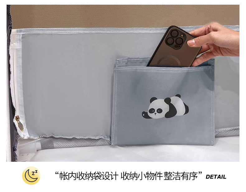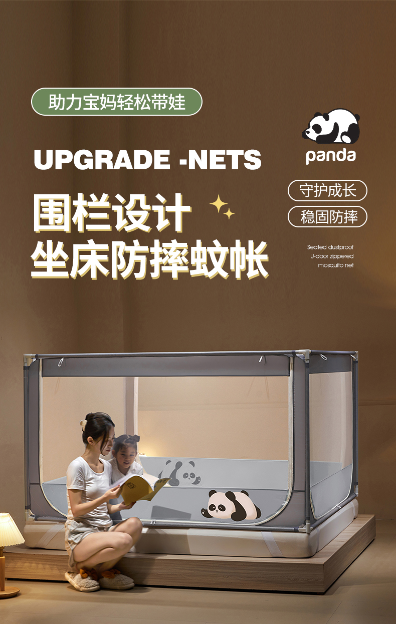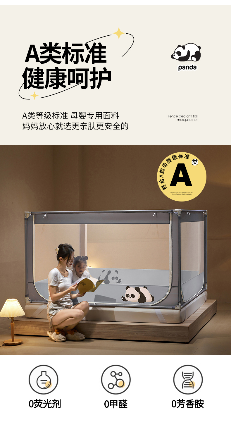 (总)伊而梦蚊帐 2025新款三开门印花款U型门A类母婴级加高坐床款蚊帐升级版围栏款防摔支架906款 ,熊猫-粉,熊猫-蓝,熊猫-杏