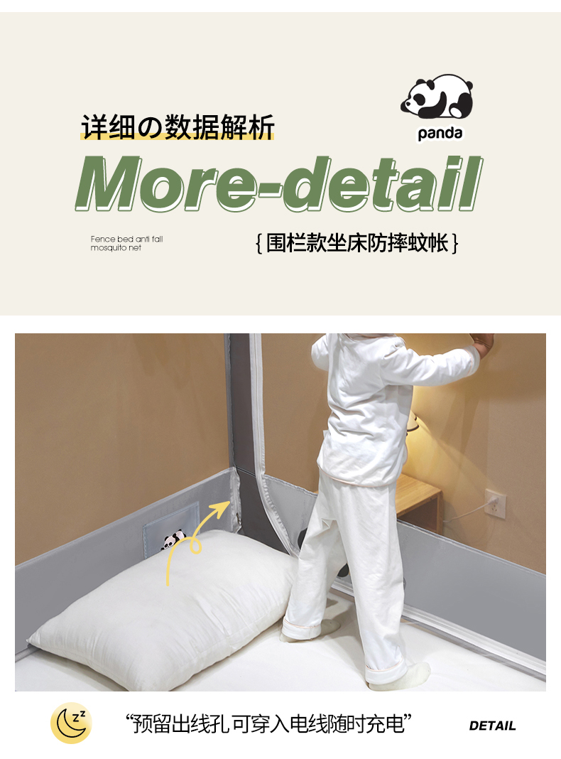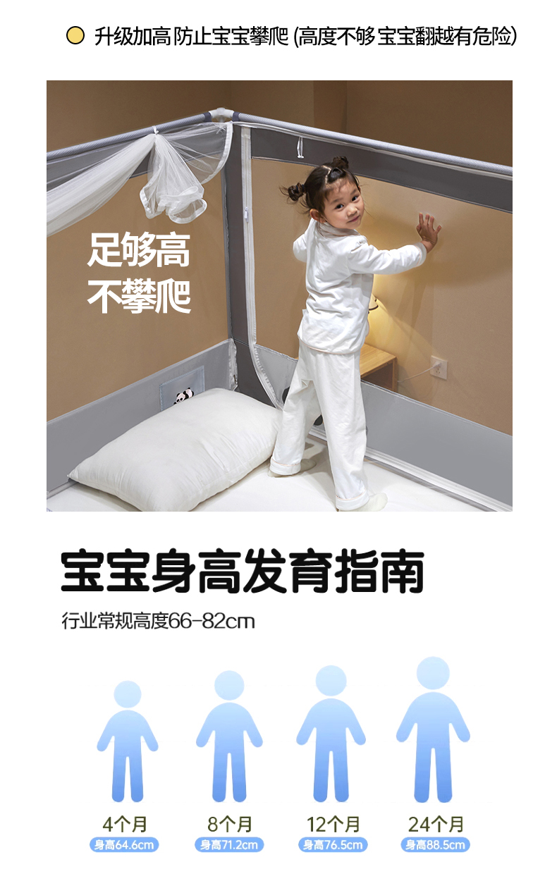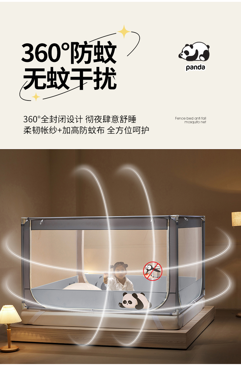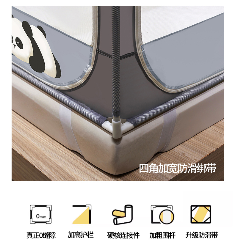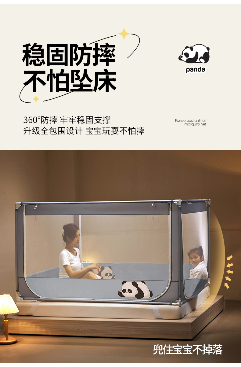 商品名称: 伊而梦蚊帐 2024新款围栏防摔U形三开门坐床蚊帐 围栏款-熊猫-蓝