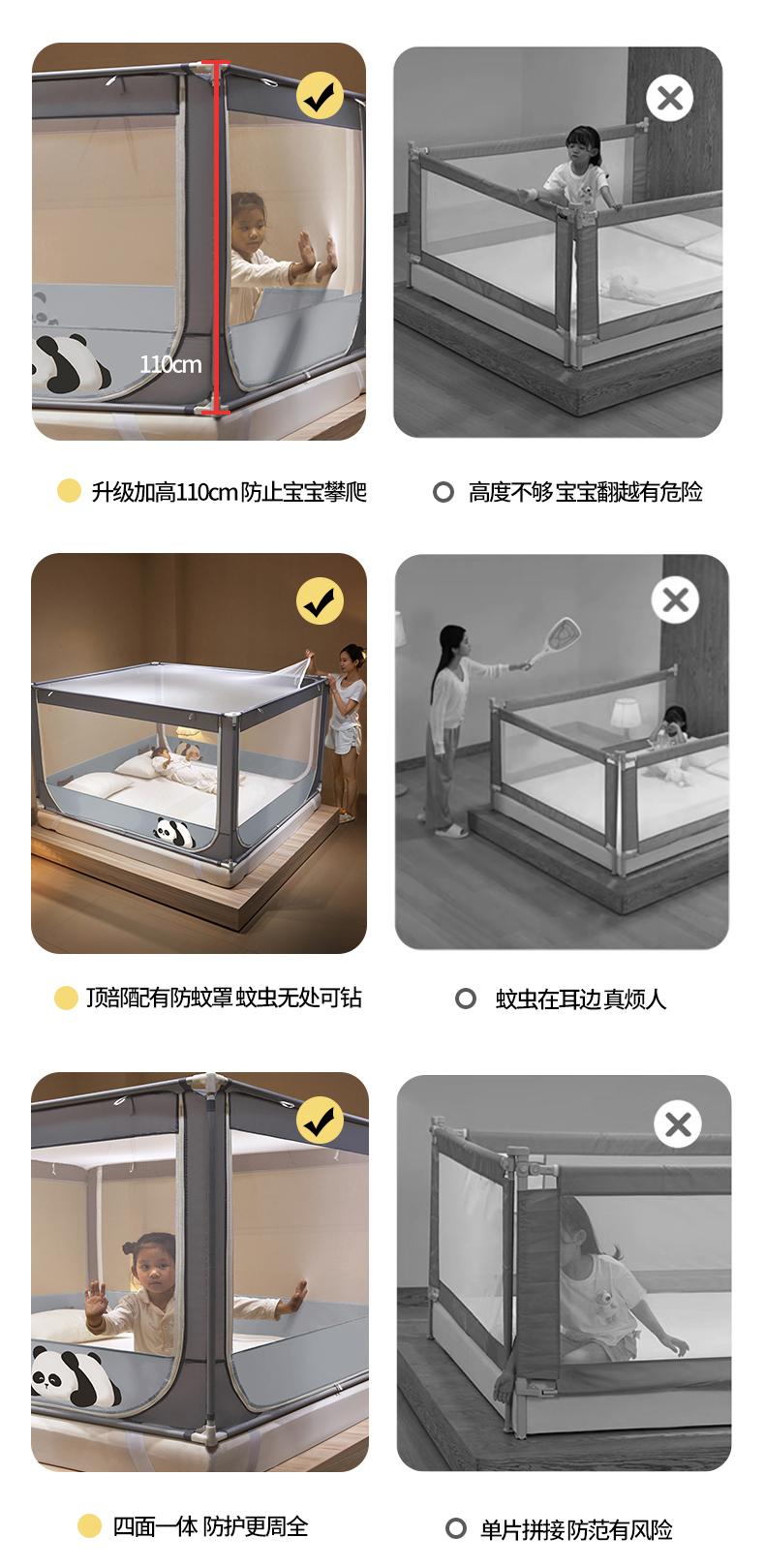 伊而梦蚊帐 2024新款围栏防摔U形三开门坐床蚊帐 围栏款-熊猫-蓝