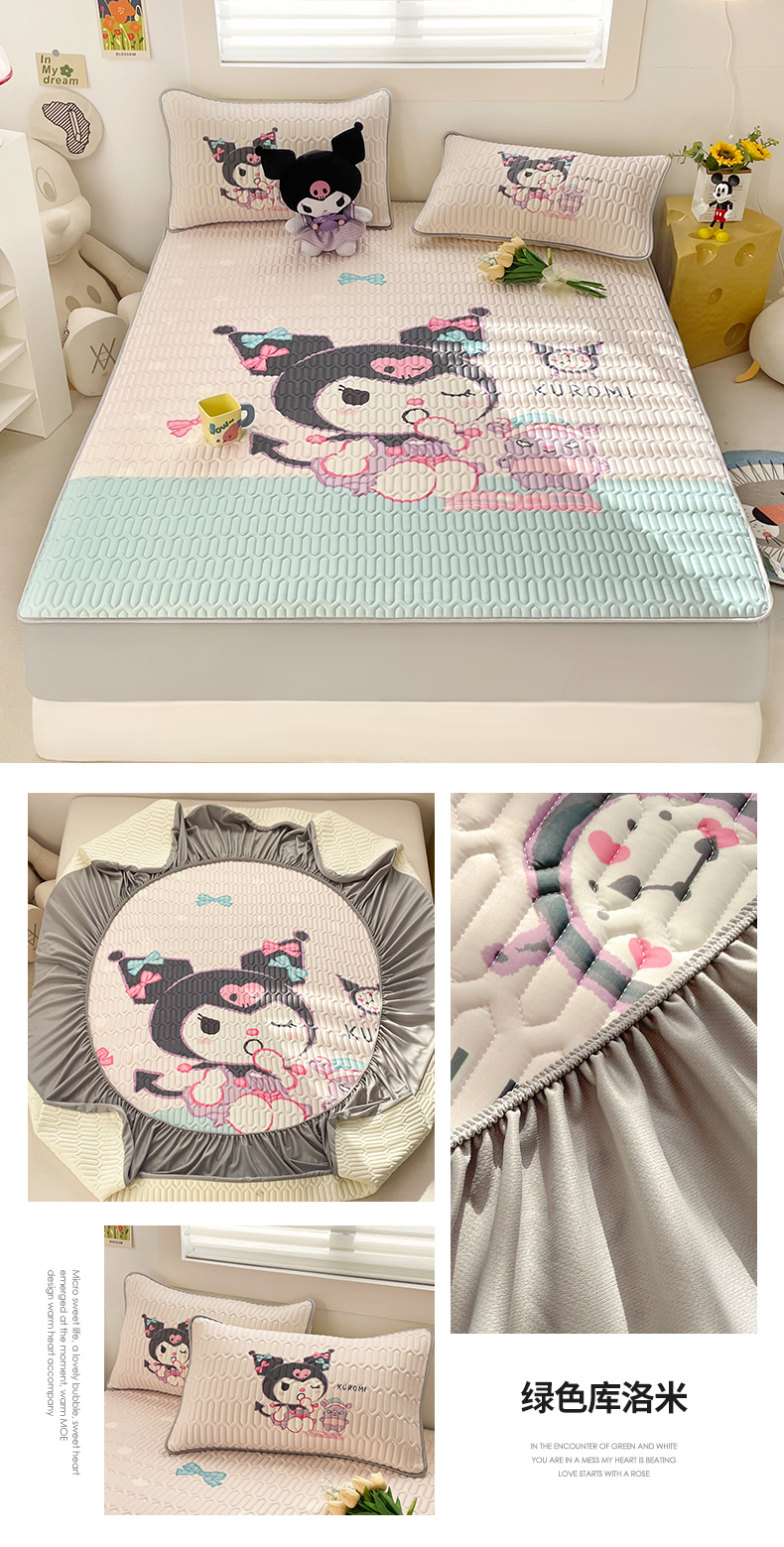 商品名称:米帛家纺 2024新款大版三丽鸥A类凉感丝乳胶凉席-床笠款 绿色库洛米