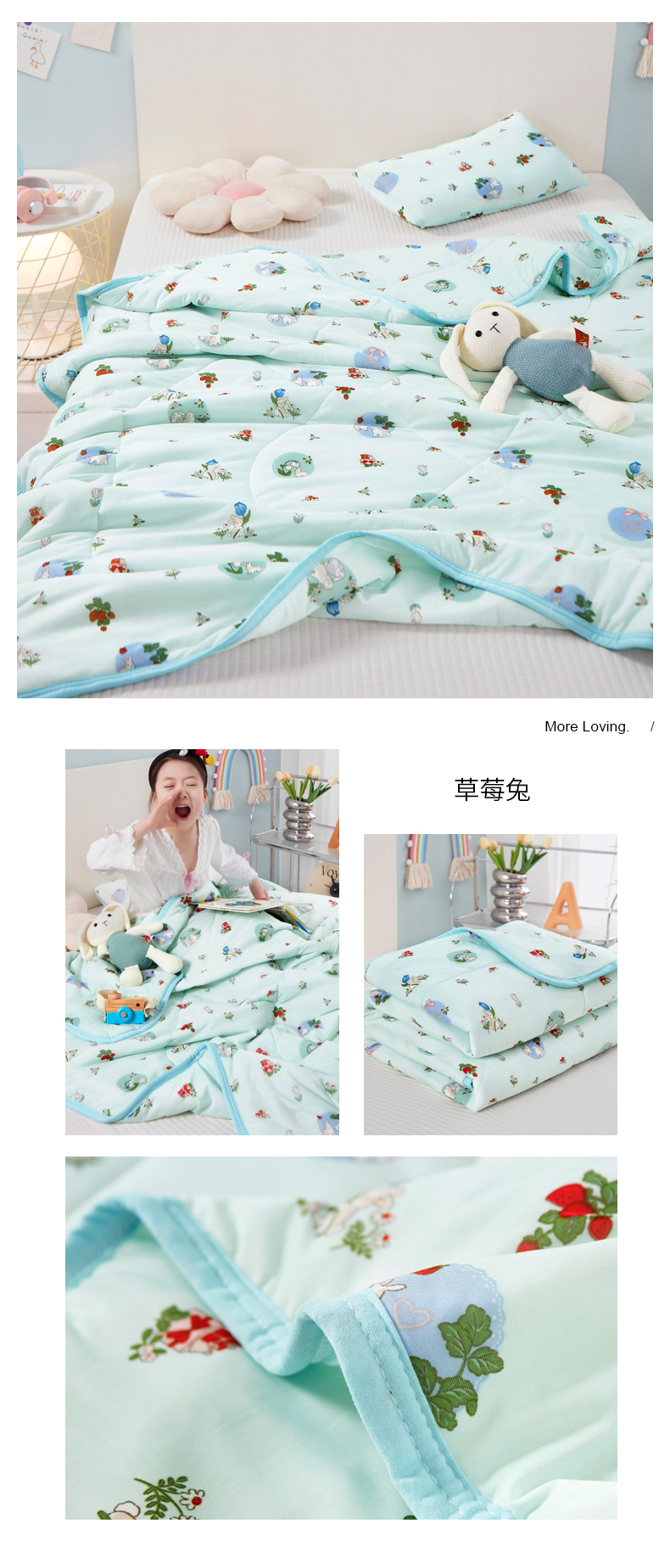 商品名称:丝涟家居 2025新款A类卡通小清新双面印花凉感丝夏被 草莓兔