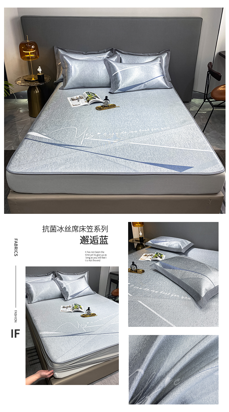 商品名称:由有2024升级款A类抗菌高精密色织提花可水洗冰丝凉席三件套/床笠款 邂逅-蓝
