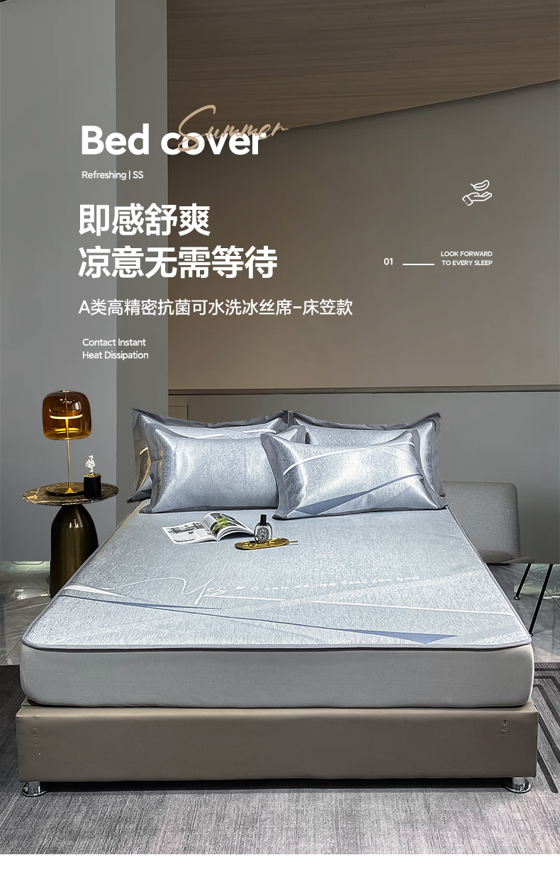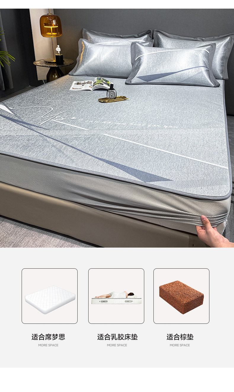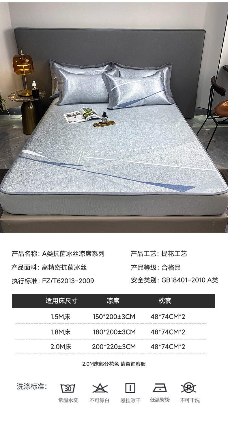 (总)由有家居 2025新款A类轻奢高精密7A抗菌色织可水洗冰丝床笠款凉席三件套,艾琳,都市,梵希,风尚,格调,华尔兹,极光,卡诺,洛可,觅,魔方,星球