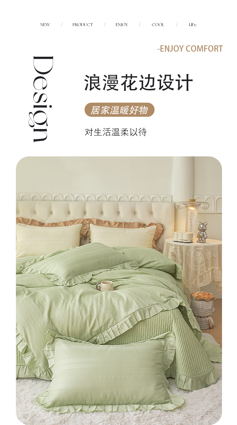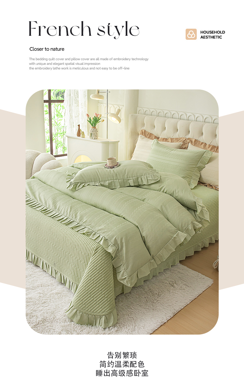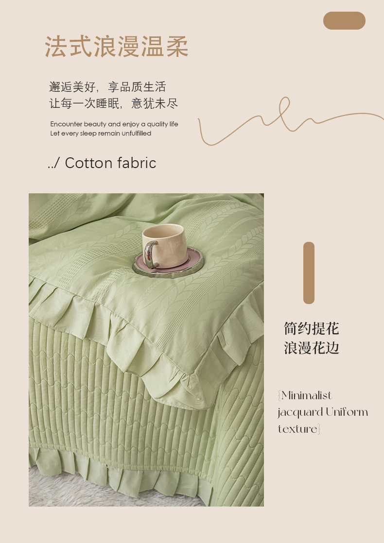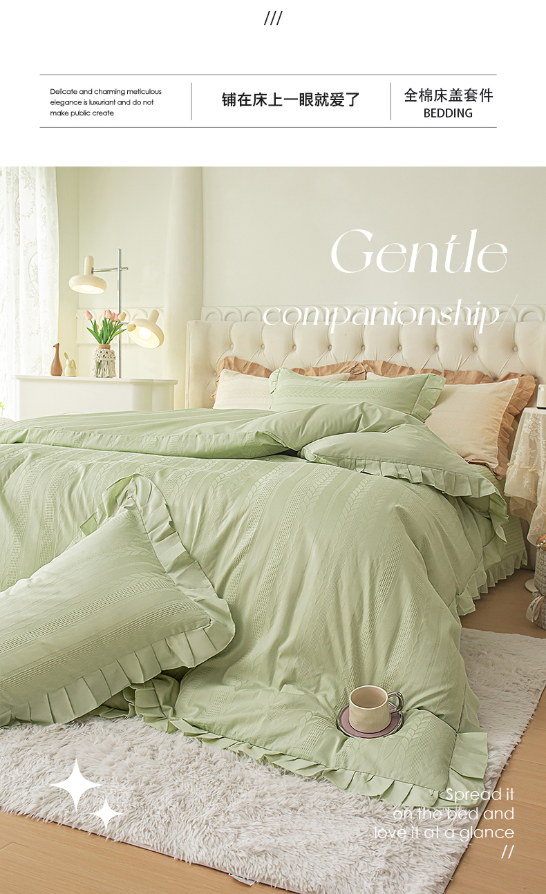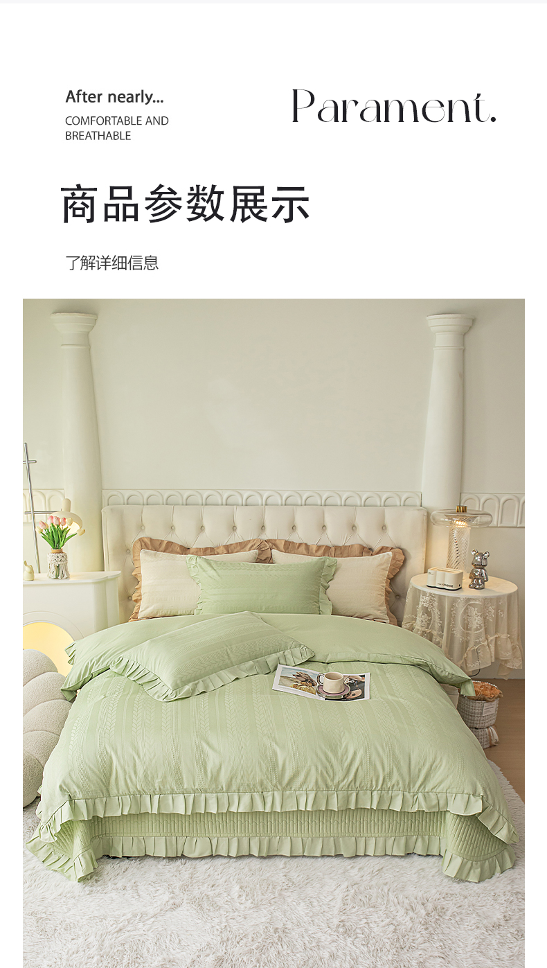 商品名称:美伦美焕 2024新款韩版公主风纯色全棉纯棉花边床盖四件套 嫩绿