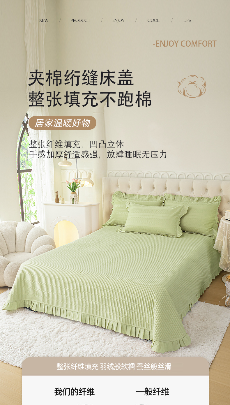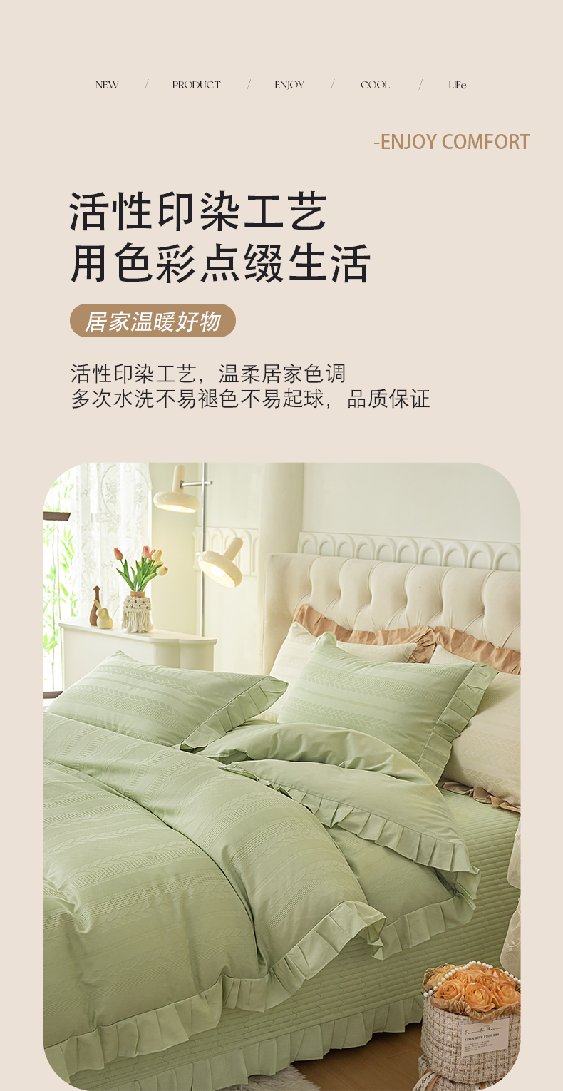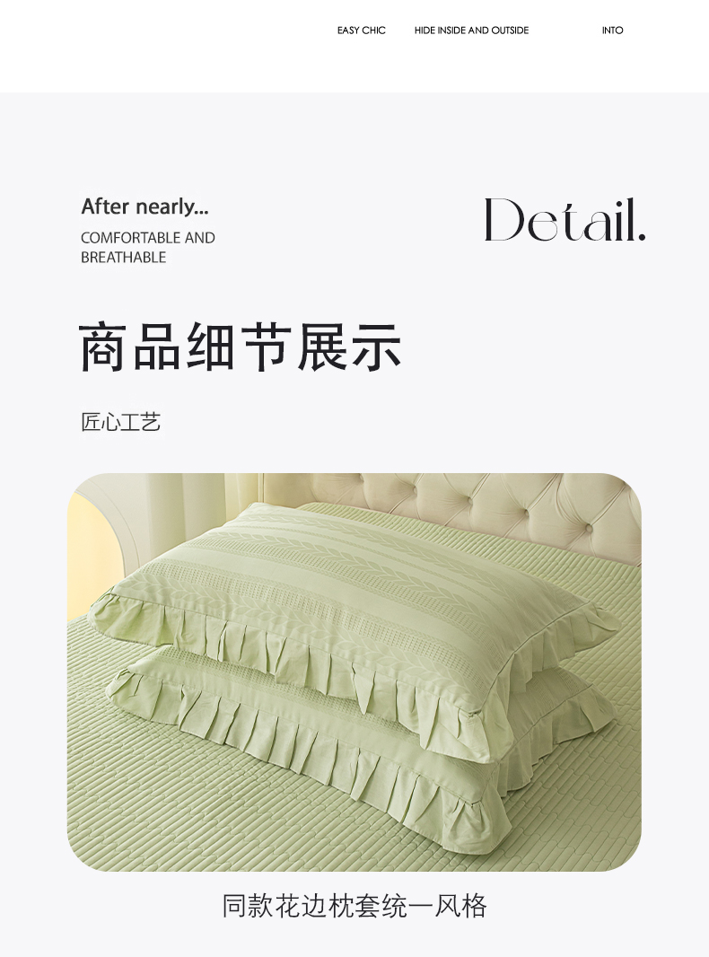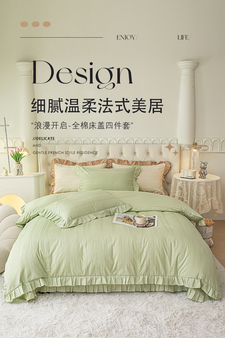 商品名称:美伦美焕 2024新款韩版公主风纯色全棉纯棉花边床盖四件套 嫩绿