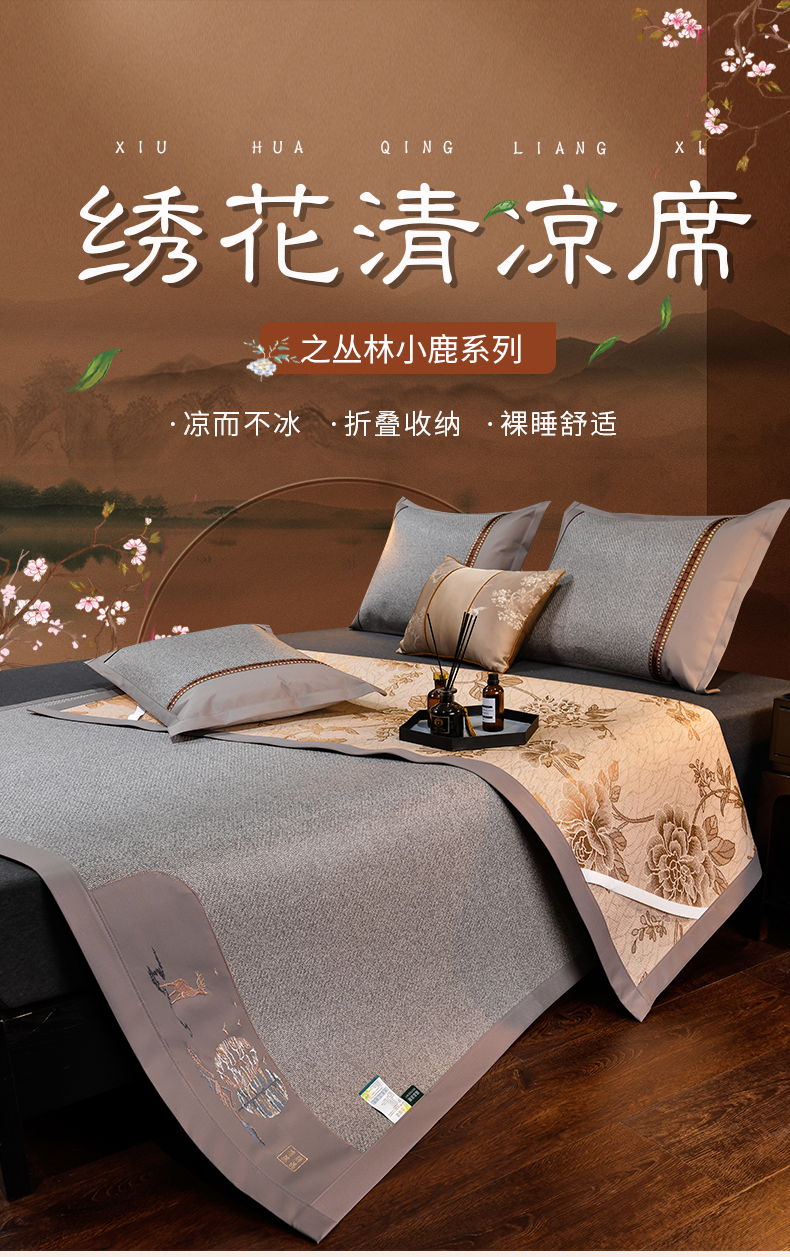 当前位置: 91家纺网 > 商品网购 > 床上用品 > 凉席 > 其他凉席 > 小牛席业 2024新款丛林小鹿绣花清凉-双面席系列 丛林小鹿-绣花清凉席(灰色)